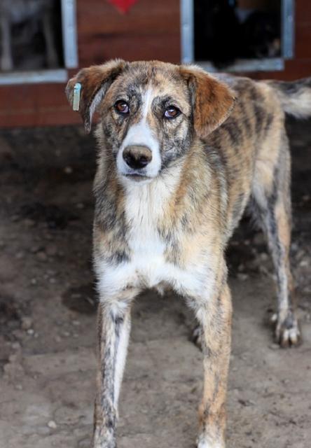 Der wunderschön gezeichnete GORDY ist ein freundlicher, aber unsicherer Rüde. Als wir ihn besuchten, tänzelte er wild um uns herum, blieb aber immer auf Abstand.
