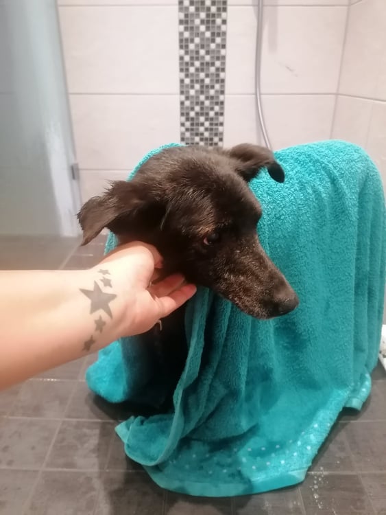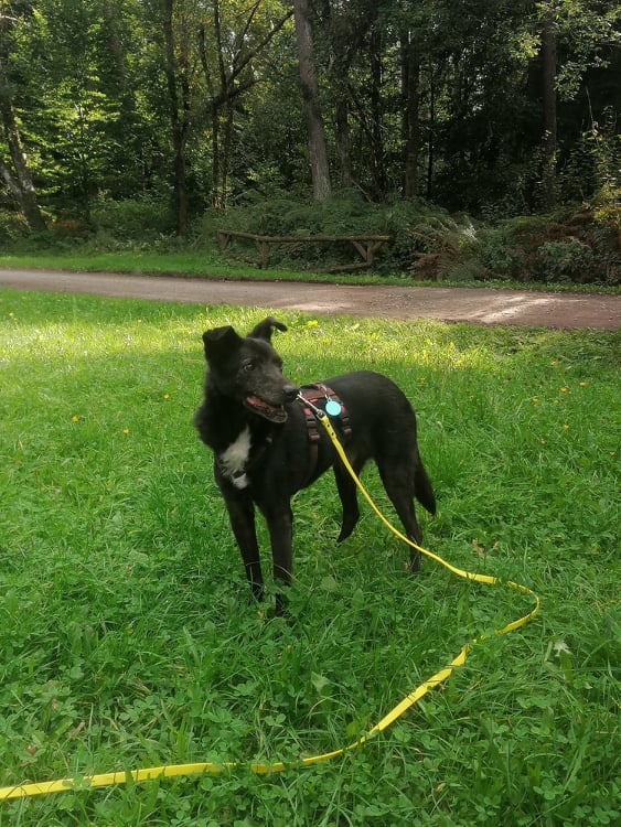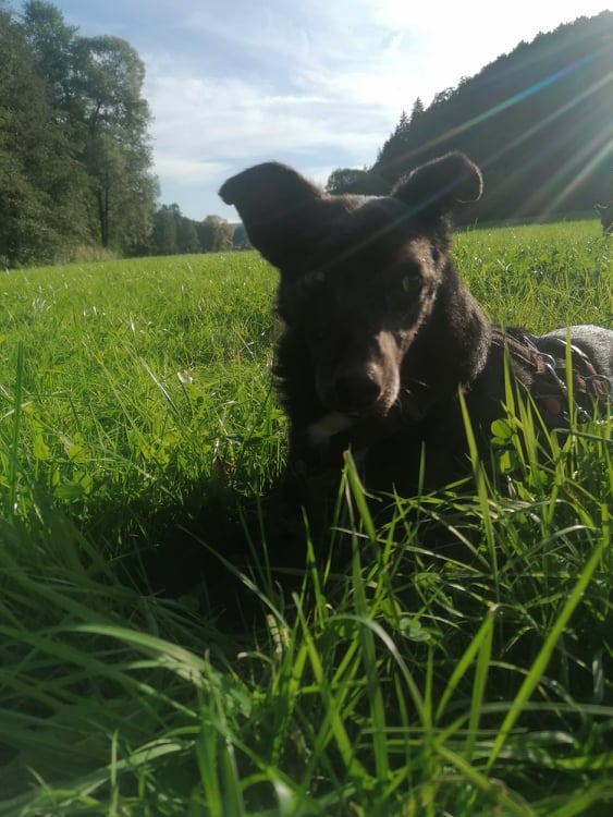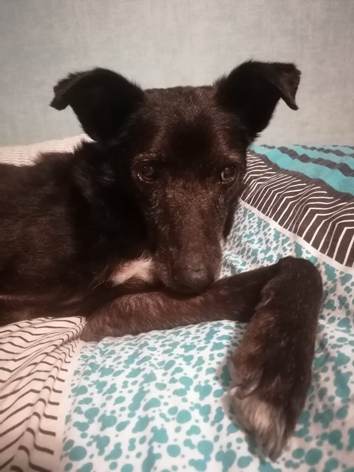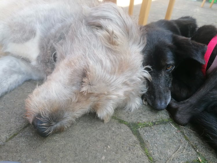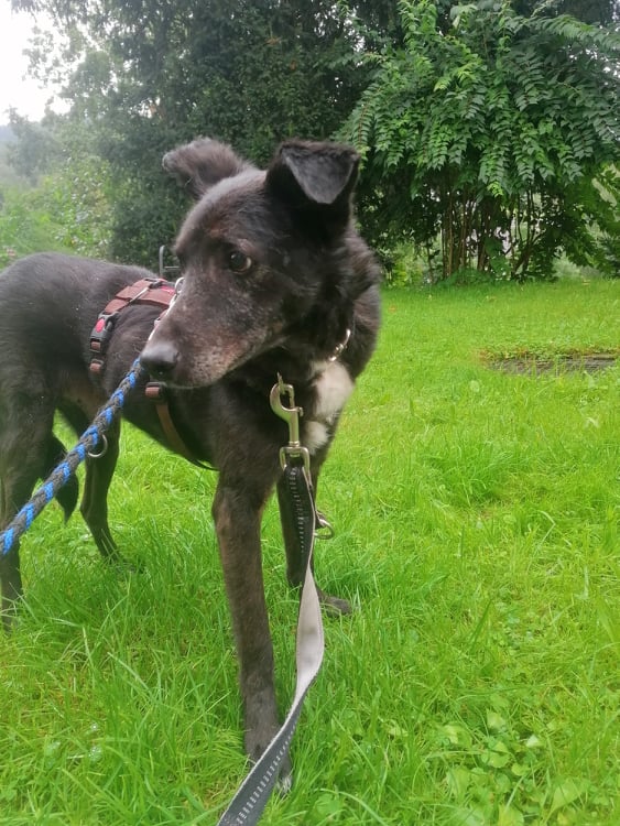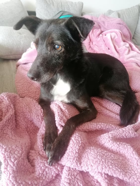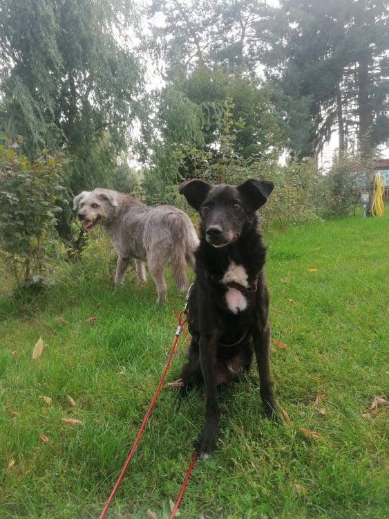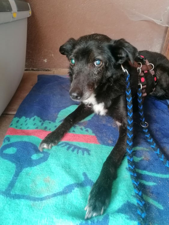 Charlie hat eine beidseitige Linsentrübung und kaum noch Zähne im Mund. Anfangs war er auf seinem Gnadenplatz sehr zurückhaltend und schreckhaft. Nach kurzer Zeit hat er sich sehr gut eingelebt, kuschelt mit dem Ersthund und auch die Katzen findet er ganz nett.