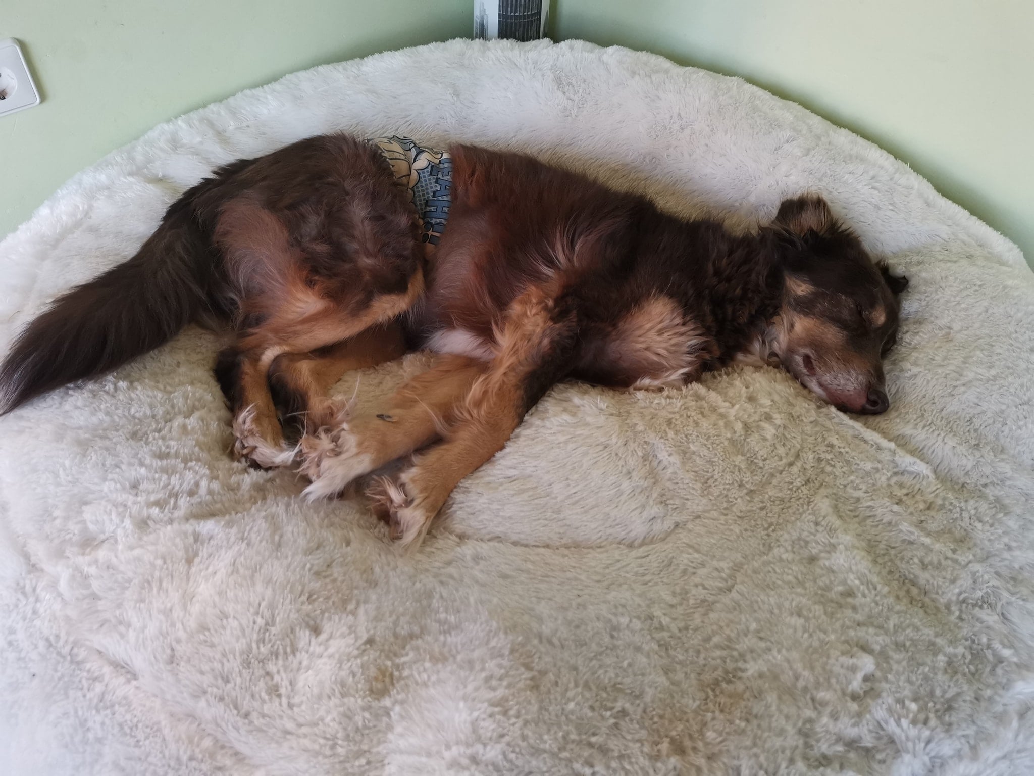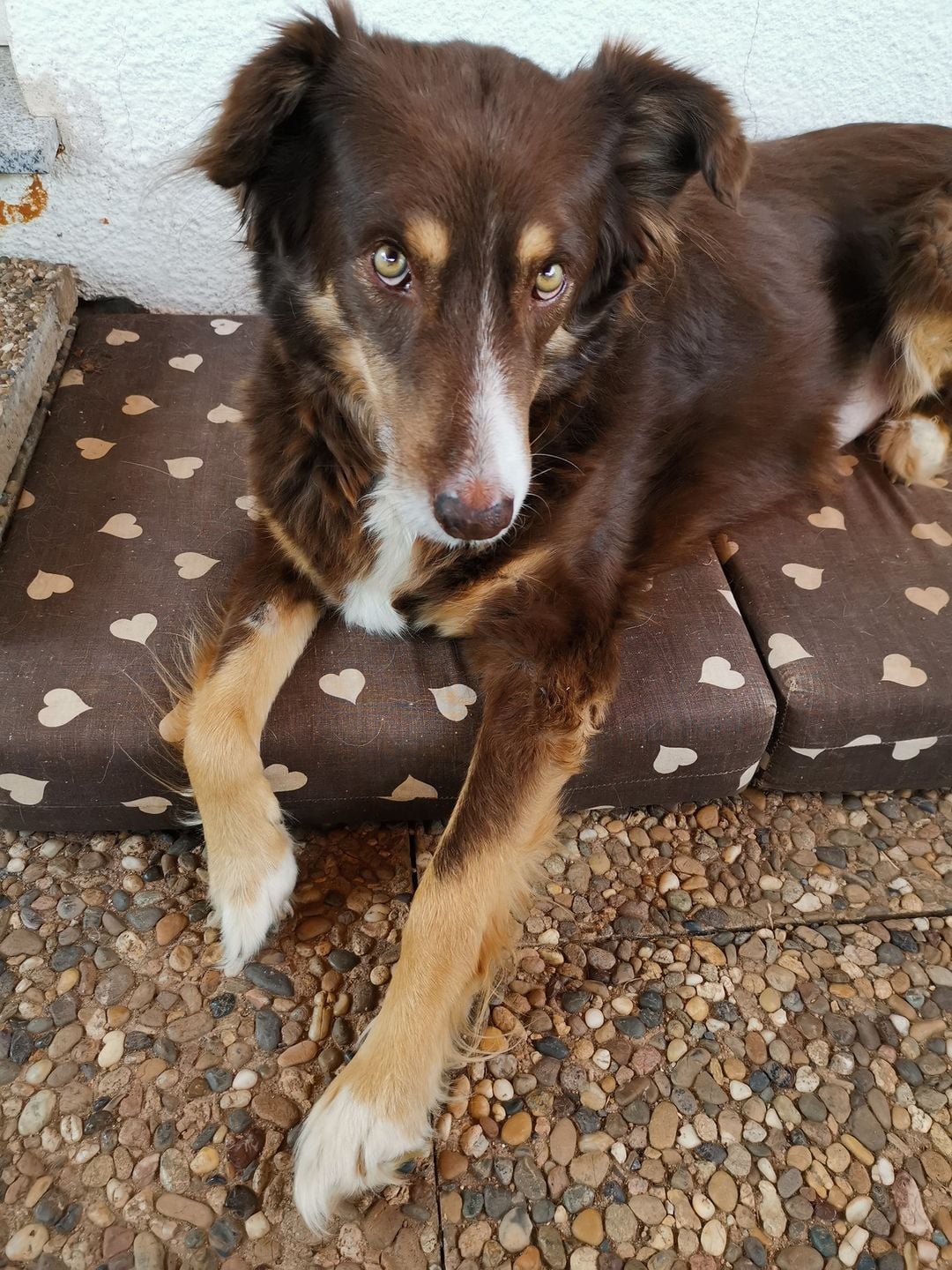 Rüde CHOCO wurde angefahren und war eine Zeit lang gelähmt. Er kann jetzt wieder einigermaßen laufen, jedoch seine Blase nicht mehr kontrollieren.