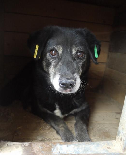 KUTO lag nur in seiner Hütte, hat aber interessiert Richtung Leckerchen-Hand geschnuppert und die Leckerchen dann auch zaghaft herausgezupft.
