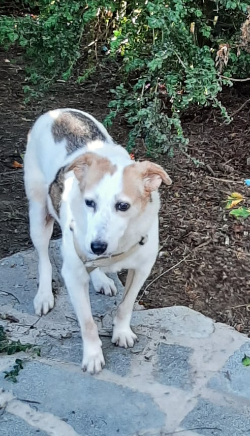 NIMA hat große Probleme, zu laufen. Die Ursache kennen wir nicht. Uns gegenüber zeigte sie sich sehr ängstlich und traute sich weder Futter aus unserer Hand zu nehmen, noch ließ sie sich anfassen. Sie zeigte zwar keine Drohgebären, aber wir wollten sie nicht zu sehr bedrängen. NIMA wich unseren Blicken aus und wäre am liebsten unsichtbar gewesen. Sie lebt mit 3 weiteren sehr zurückhaltenden älteren Hunden in einem Raum, es fehlt ihr deutlich an menschlichem Kontakt. Mit anderen Hunden ist NIMA verträglich.