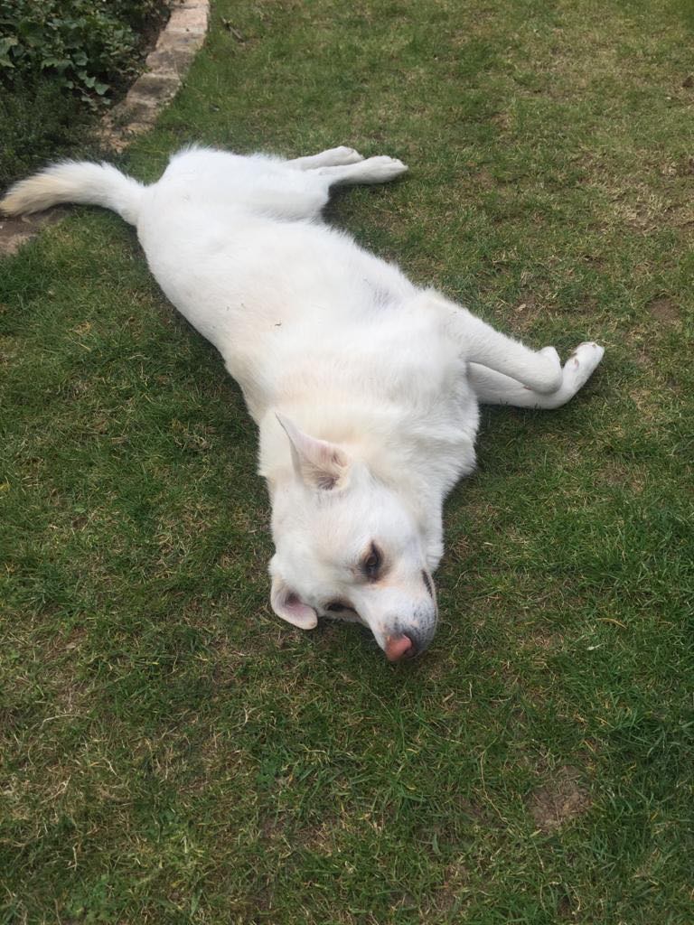 Hier zeigt er sich recht ausgeglichen. Er geht den Tag gern entspannt an und ist keine große Sportskanone. Er verträgt sich gut mit anderen Hunden und ist neuen Menschen stets aufgeschlossen. Frauen ist er eher zugetan. Er läuft gut an und ohne Leine, fährt gern mit im Auto und bleibt problemlos zuhause alleine. Am Zaun oder bei Ankündigung von Besuch macht er gern erstmal n lauten, lässt sich aber leicht abbrechen. Er frisst gern alles möglich, was er so findet. Ist dabei aber auch jederzeit ansprechbar. Futternapf war noch nie ein Problem.