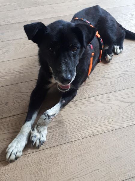 Gezeichnet durch das Straßenleben brachte er einen deformierten linken Vorderlauf mit (vermutlich bedingt durch eine Falle), welcher ihn aber nicht sonderlich stört und es seiner Lebensfreude keinen Abbruch tut.