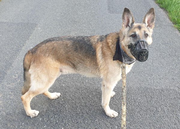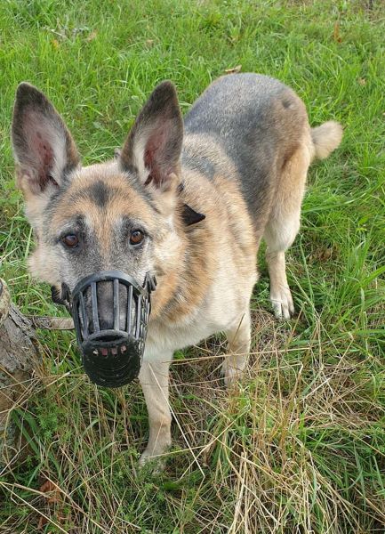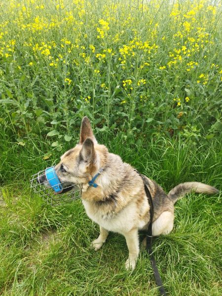 Tada.. da ist er … ziemlich anders als erwartet…naja eigentlich haben wir ja nix erwartet und nehmen es so wie es kommt. OK bis die Kofferraumklappe aufging und wir nicht freudig begrüßt wurden…er war alles andere als begeistert und zeigte das sehr deutlich….also umsonst ist der Maulkorb nicht drauf