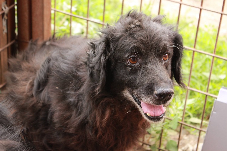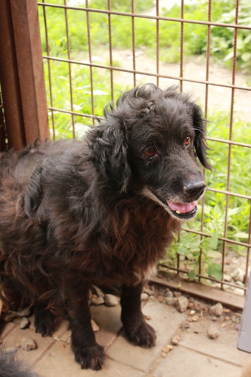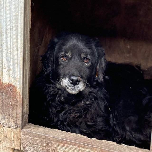 Der herzerweichende Senior GRAND mit den niedlichen Knopfaugen und dem tollen Lockenkopf zeigte sich bei unserem Besuch freundlich und interessiert. Am beliebtesten waren die mitgebrachten Leckereien, für die er mehrfach aus seiner Hütte stolperte. Altersbedingt ist GRAND schon etwas träge und wir wünschen dem armen Hundemann so sehr, dass er seine müden Knochen nun endlich – nach so vielen Jahren – in einem warmen Körbchen ausruhen darf. Der Shelter soll bitte nicht seine Endstation sein – er soll noch einmal die Sonnenseite des Lebens kennenlernen, samt Liebe und Geborgenheit. GRANDs Fell ist stark verfilzt, sodass eine neue Frisur für ihn sicher eine Wohltat wäre. Wer gibt diesem Kerlchen diese wichtige Chance?