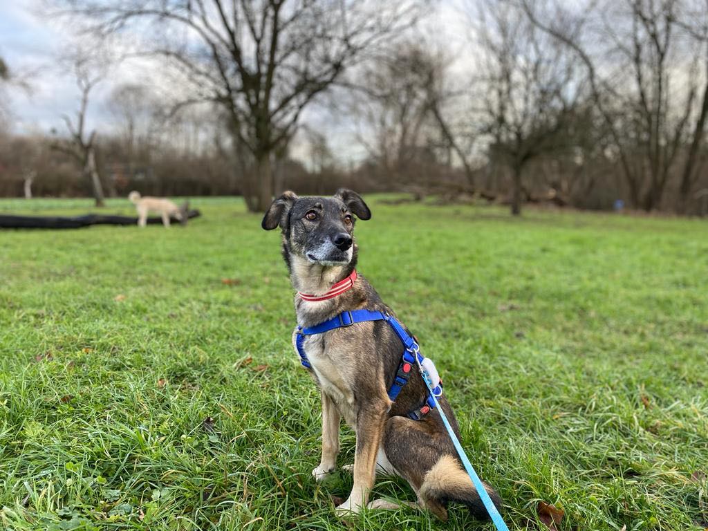 Laute Geräusche machen ihr allerdings noch Angst. In Hundebegleitung kann Sie problemlos mehrere Stunden alleine bleiben, könnte aber sicherlich auch mit ins Büro. An der Leine läuft sie auch schon gut und reagiert prima auf Rückruf (an der Schleppleine).