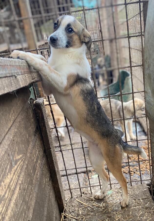 Leider gibt es in fast jedem Zwinger einen „Chef“, selbst unter den Welpen und Junghunden. Für die ohnehin schüchterne GREETJE bedeutet das zusätzlichen Stress. Die kleine Hündin sitzt die meiste Zeit in der Hütte, traut sich kaum raus und wenn ist sie verängstigt. GREETJE sollte nicht länger im Shelter warten müssen. Wer gibt ihr die Chance auf ein Leben in Freiheit und Sicherheit?