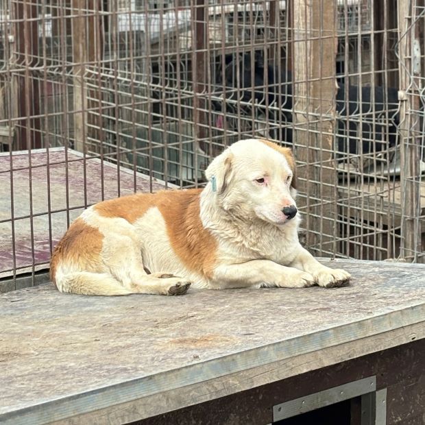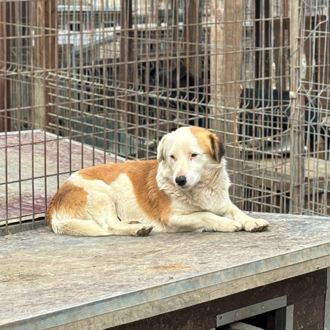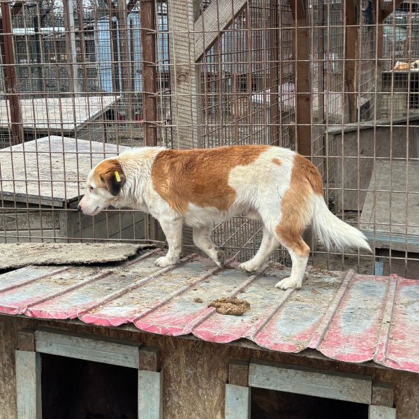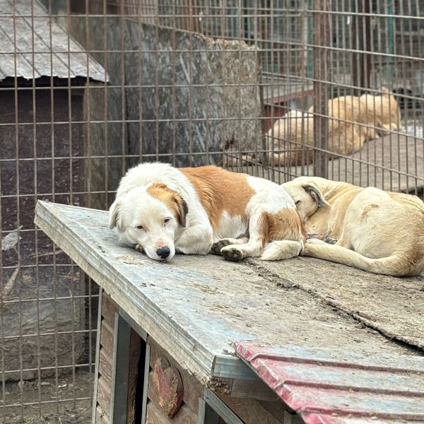 Diesem kleinen Kerlchen war unser Besuch nicht wirklich geheuer. Aus sicherer Entfernung beobachtete GREGORY unser Tun, schnupperte an den hingeworfenen Leckerlie – doch wirklich überzeugen konnten diese ihn nicht. Er wich jeder Kontaktaufnahme im offenen Kennel aus, sodass wir nicht an ihn heran kamen und ihn nicht anfassen konnten. GREGORY hat seinen Safe-Space auf dem Hüttendach gefunden, wo er sich zur allgemeinen Mittagsruhe entspannt ablegte und döste. Nähe zum Menschen wird er wahrscheinlich einfach nicht kennen. In einer ruhigen Umgebung würde dieser kleine Hundemann sicher schon bald merken, dass man es gut mit ihm meint und er sich nicht fürchten muss. Daher suchen wir erfahrene und liebevolle Menschen, die ihn an die Pfote nehmen und ihm die Zeit und den Raum – aber auch die Unterstützung – geben, die er braucht.