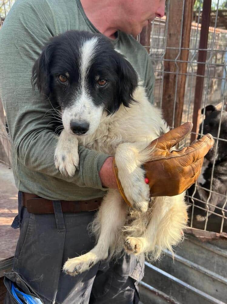 Wir konnten ihn gut aus der Hütte raus heben und auf den Arm nehmen. GROBI ist gut anfassbar und absolut zutraulich. Mit allen anderen Hunden ist er sehr freundlich und verträglich. Er geht jedem Ärger aus dem Weg.