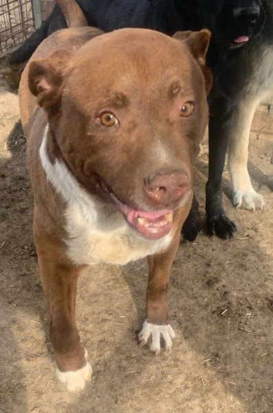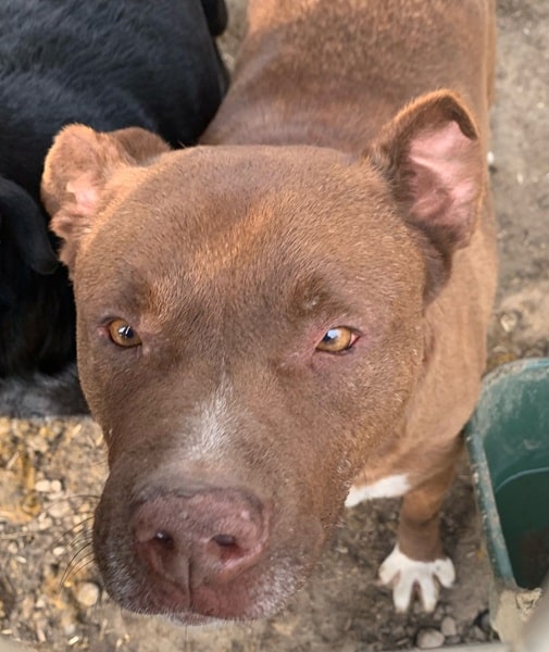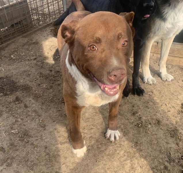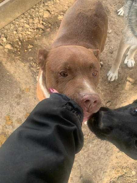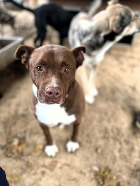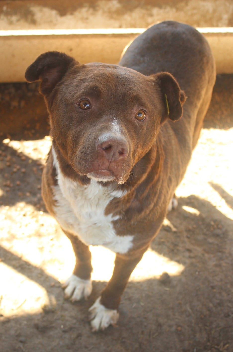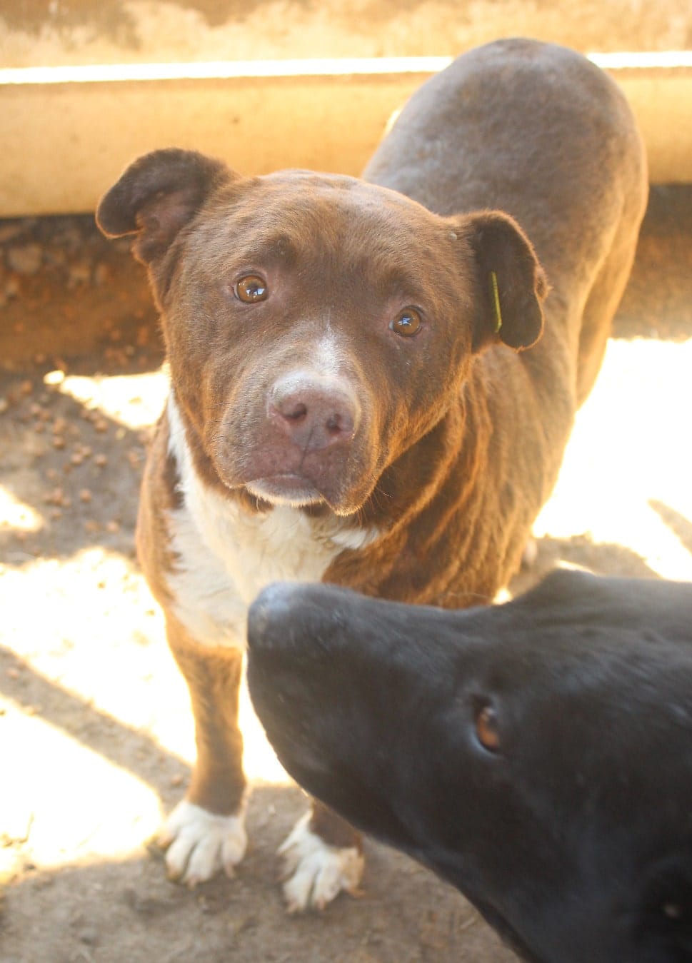 Grummi begrüßte uns, ließ sich von uns streicheln und holte sich Leckerchen bei uns ab. Dabei schirmte er uns ab, es wirkte, als wolle er uns kontrollieren. Außerdem gewannen wir den Eindruck, dass er auch die anderen Hunde dominiert und der Chef im Kennel ist. Im potentiellen Zuhause sehen wir Grummi daher eher als Einzelhund. Bei Menschen mit ausreichend Hundesachverstand kann er sich bestimmt zu einem treuen Begleiter entwickeln. In einem Haushalt mit Kindern sehen wir ihn aufgrund seiner Tendenz zur Kontrolle nicht. Grummis linke Ohrspitze fehlt.