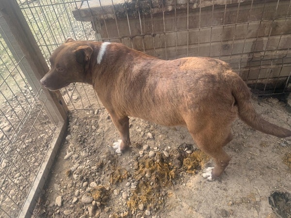 GRUMMI ist ein lieber, noch etwas unsicherer Rüde, der bereits seit Mitte 2023 in Bucov sitzt. Er war zuerst zurückhaltend, nahm unsere Leckerlies und ließ sich nur vorsichtig an der Schnauze berühren. Nach einigen Minuten ist er aber bereits aufgetaut und wir konnten ihn anfassen und streicheln. Mit seinen Artgenossen im Kennel zeigt GRUMMI sich verträglich.
