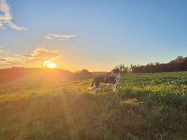 Gudi ist superschlau und lernt sehr schnell. Gudi liebt es auf dem Sofa zu kuscheln, aber unterwegs ist sie eine Rakete, die vor Lebensfreude nur so sprüht. Darum gehen wir öfter auf eine komplett eingezäunte Wiese, wo sie ihrer Energie freien Lauf lassen kann. Sie rennt wie eine Wilde ihre Kreise und schlägt Haken, die Hasen blass vor Neid werden lassen. Sie hört auf Pfiff und kommt in Windeseile zurück. Ein Träumchen! Ich wünschte, meine beiden würden sich das mal abschauen Gudi ist nichts für Couchpotatoes! Sie braucht Menschen, die ihrer Energie gerecht werden. Sportliche Menschen, die Lust auf Hundesport wie Agility haben, oder sich eine Begleitung beim Joggen, Fahrradfahren, Wandern o. Ä. wünschen. Ich, als Pflegemama, würde mir für sie aber ein Zuhause wünschen, wo sie am Pferd mitlaufen könnte. Auf dem Land, mit viel Natur drumherum und vielleicht mit Hundekumpels, die ihrem wilden Spielen gewachsen sind. Denn sie liebt es, wild und ausgiebig zu toben. Die Spielpartner sollten aber ähnlich ticken, ansonsten werden sie einfach überrannt und sind schnell von ihrer Energie überfordert