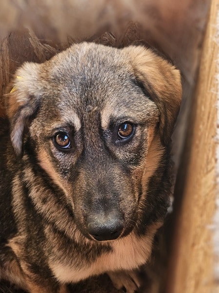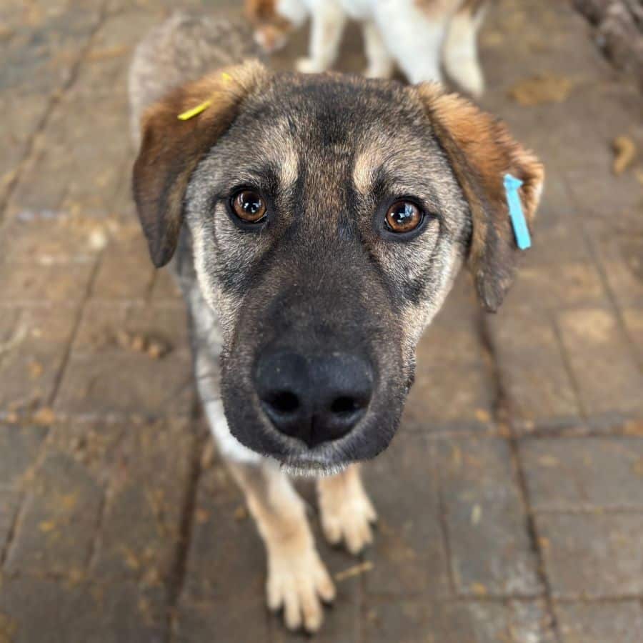 Der hübsche GÜVEN ist zu einem wunderhübschen jungen Rüden herangewachsen. Bei unserem Besuch zeigte er sich sehr neugieirig und interessiert, war stets in unserer Nähe und holte sich gern die Leckerlie aus unseren Händen ab. Dabei konnten wir ihn behutsam an seiner Schnute streicheln. Für mehr Nähe fehlte ihm in der kurzen Zeit der Mut und einfach die Erfahrung. In einer ruhigen Umgebung würde dies nach kurzer Zeit sicher schon ganz anders aussehen. Es wird nun aber höchste Zeit, dass der junge Rüde den Shelter verlassen darf.