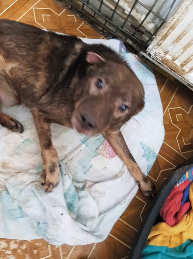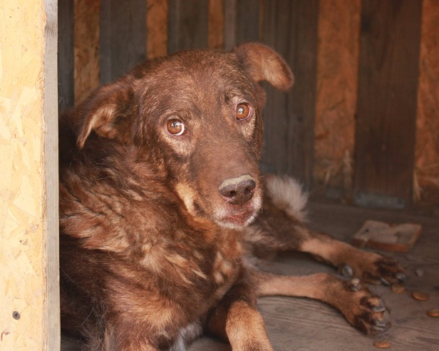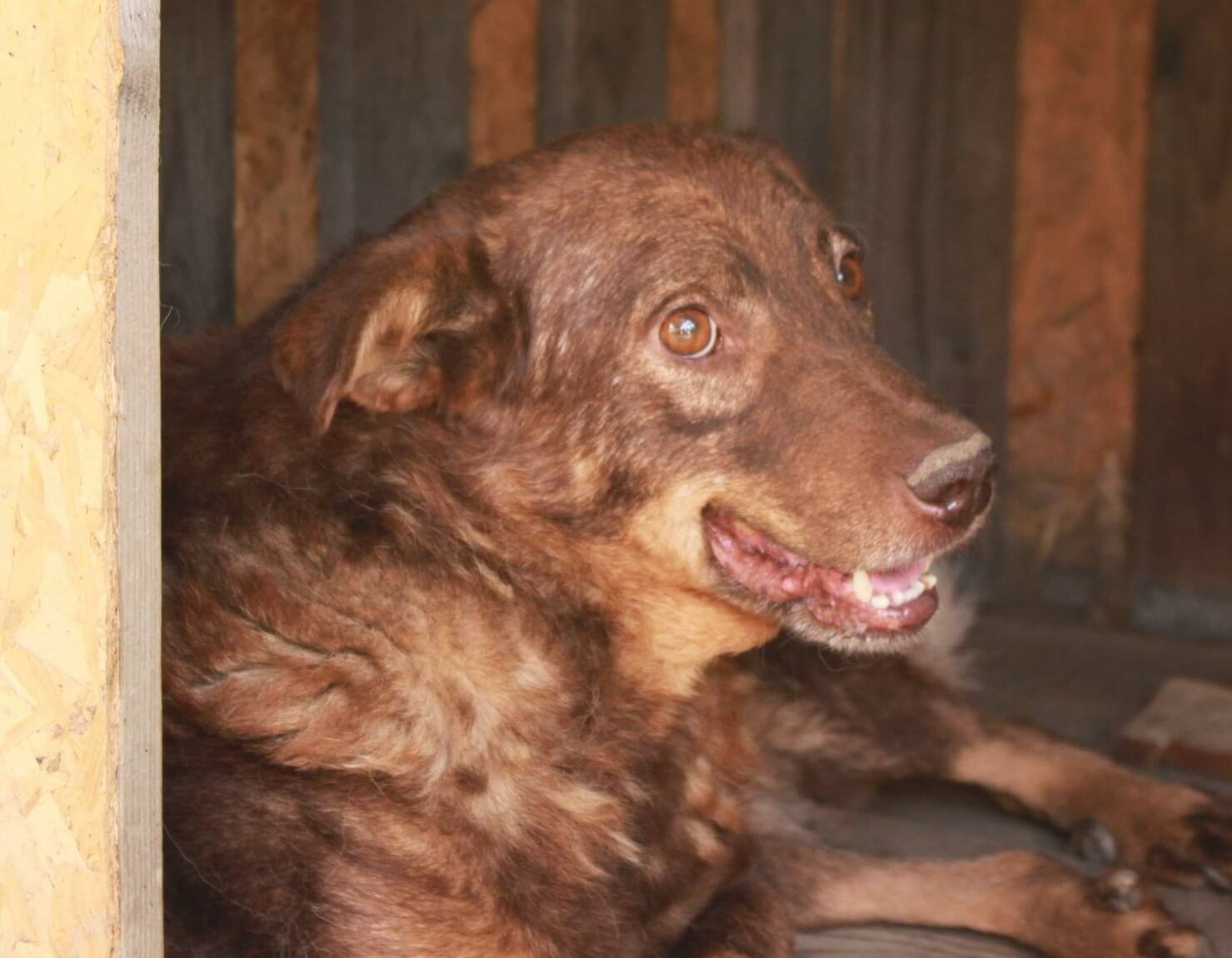 Bei unserem Besuch lag er schwanzwedelnd am Boden und freute sich über unsere Streicheleinheiten.