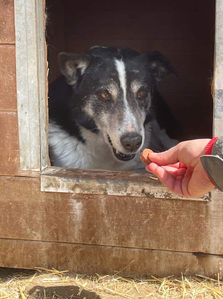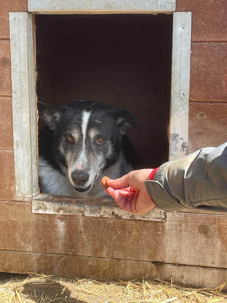 GUSS lag bei unserem Besuch leider nur in der Hütte und nahm auch keine Leckerchen mehr von uns an.