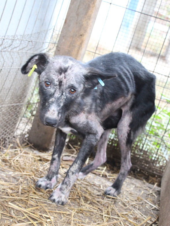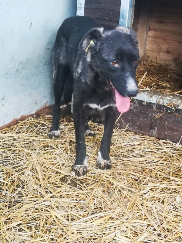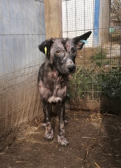 GWENDA flüchtete panisch vor uns, aber blieb immer defensiv. Wenn man es schafft, sie zu berühren, dann schreit sie vor Angst, schnappt aber nicht. Sie braucht auf jeden Fall Menschen mit Erfahrung mit sehr unsicheren Hunden.