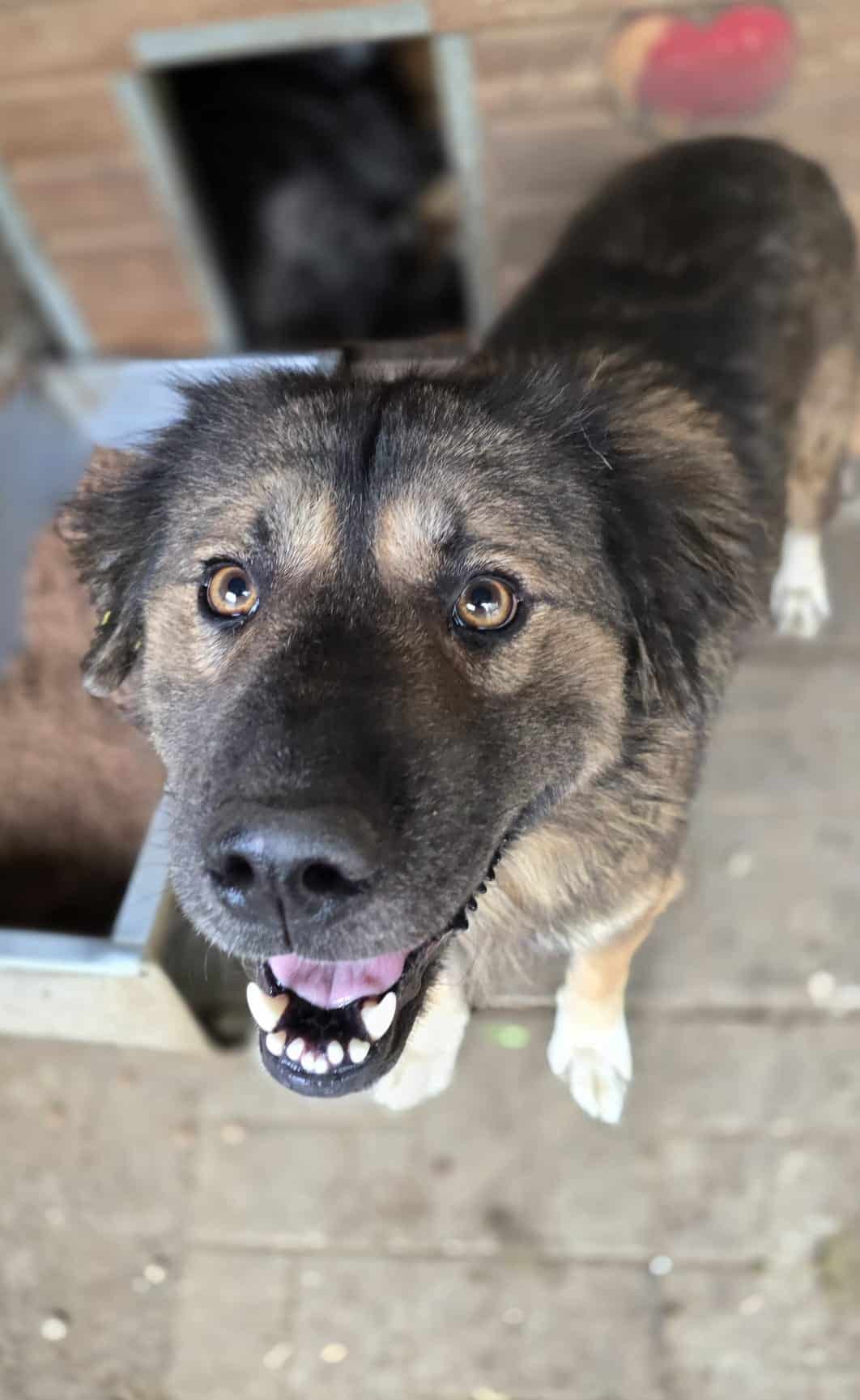 GWENY ist weiterhin eine super freundliche, verschmuste Hündin. Sie sitzt inzwischen leider in einem winzigen Kennel, den sie sich zu allem Überfluss auch noch mit vier weiteren, teils großen Hunden teilen muss. Die Hunde können sich dort höchstens ein paar Schritte in jede Richtung bewegen. GWENY freute sich sehr über unseren Besuch und die kurze Abwechslung von ihrem tristen Alltag. Sie war so glücklich über ein paar Streicheleinheiten, dabei aber auch nicht aufdringlich. Wir hoffen sehr, dass dieser kleine Kennel für die tolle GWENY nicht die Endstation ist.