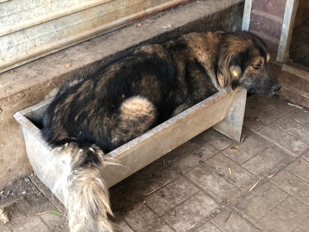 GWENY ist eine richtig nette Hündin, die sich sehr freute, dass wir kurz etwas Zeit für sie hatten, und sich sofort streicheln ließ. Für Fellpflege hat im Shelter leider niemand Zeit, aktuell hängt somit sehr viel altes Fell an ihrem Körper.