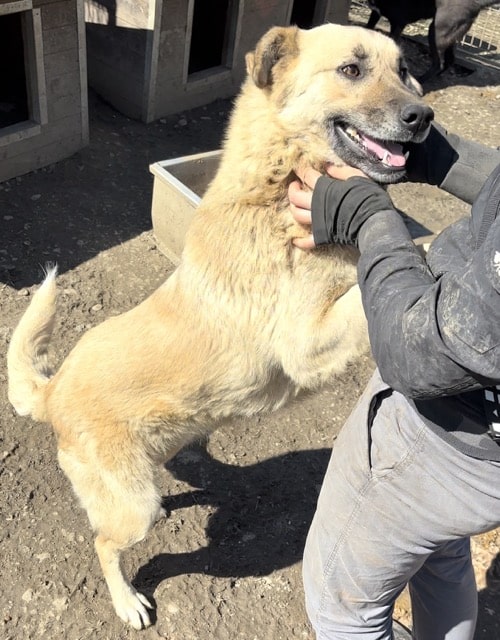 Der zauberhafte GYOZO konnte es kaum fassen, dass endlich jemand Zeit für ihn hat und ihn besucht – freudig sprang er zwischen uns umher und schmiegte sich an uns für seine heißgeliebten und leider viel zu seltenen Streicheleinheiten. Der stattliche Rüde ist einfach nur super freundlich und total menschenbezogen, weshalb er im Shelter besonders unter der Isolation leidet… Viel lieber würde er mit seinen Menschen durch den Garten tollen und Streicheleinheiten im eigenen Körbchen genießen. Für diesen absoluten Traumhund wünschen wir uns nach knapp 3 Jahren des quälenden Wartens endlich ein liebevolles Zuhause bei Menschen, die Lust auf einen tollen Begleiter haben, der ihnen jeden Tag versüßen und ein Lächeln in’s Gesicht zaubern wird. Mit seiner Kennelkollegin versteht sich GYOZO prima, weshalb er sich sicher auch über einen vorhandenen Hundekumpel freuen würde, von dem er sich vielleicht auch noch abschauen könnte, wie es sich auf der Sonnenseite mit uns Menschen lebt.