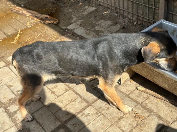 Für GYPSI wird das Leben in Bucov von Tag zu Tag schwieriger. Als wir sie in ihrem Kennel besuchten, waren wir sehr erschrocken, wie sehr sie abgebaut hatte. Die nette Hündin ist sehr abgemagert und resigniert. Sie lebt ausschließlich mit großen Hunden zusammen und geht im Kennel vollkommen unter. Zudem wird sie augenscheinlich nicht ans Futter gelassen. In unserer Anwesenheit fraß sie sich erst einmal ausgiebig satt. Das Futter mussten wir ihr allerdings in die Hütten werfen. Außerhalb der Hütte traute sie sich selbst in unserer Anwesenheit nicht zu fressen.