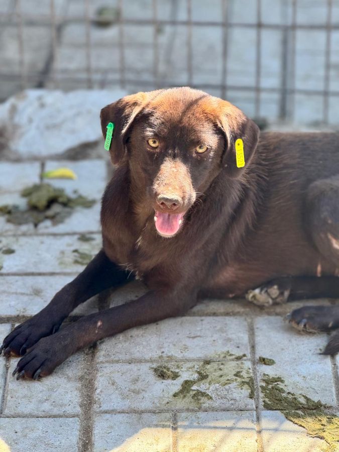 Diese junge Hündin ist erst seit Kurzem im Shelter und noch ganz damit beschäftig, sich dort zurecht zu finden. Die Nähe zu Menschen ist ihr noch fremd, sie kennt es einfach nicht. Doch sie ist neugierig und aufmerksam. Sie blieb während unseres Besuchs immer in unserer Nähe und nahm Leckerchen vorsichtig vom Boden. Anfassen ließ sie sich noch nicht, dafür fehlt ihr momentan der Mut. Dafür war sie dafür zu begeistern. Leckerchen aus der Luft aufzuschnappen.