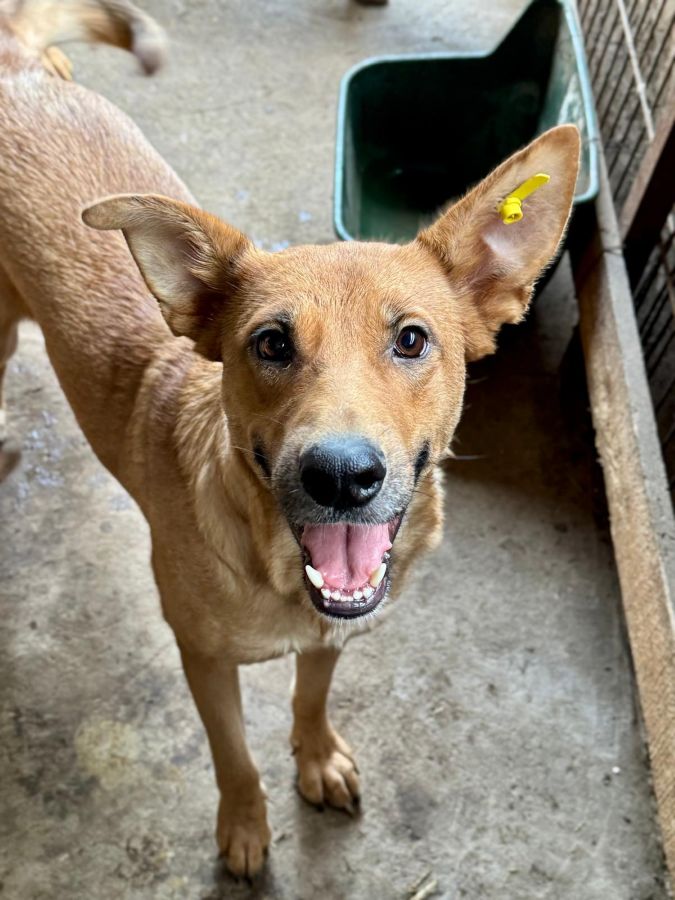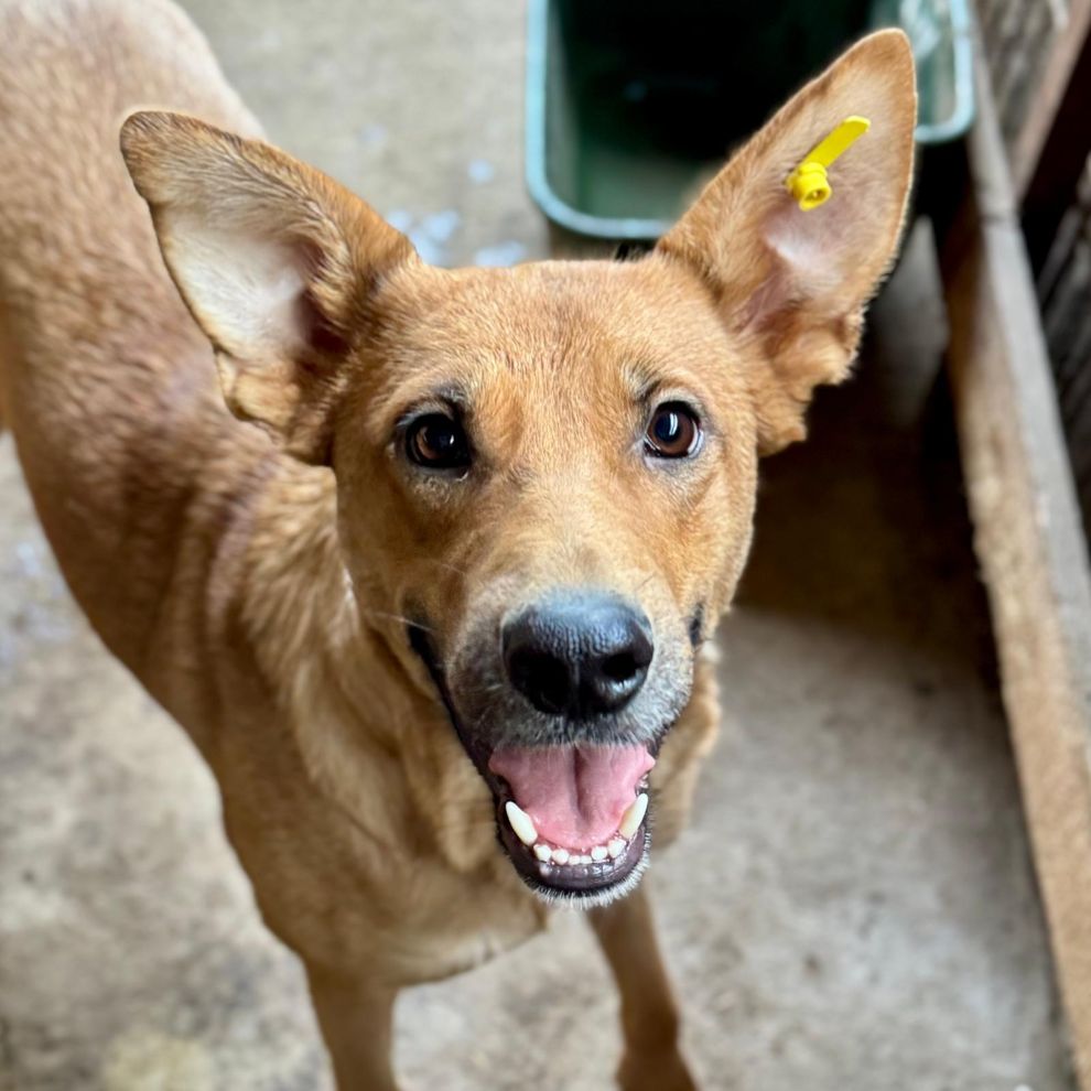 Diese Hündin ist ein wirklicher Sonnenschein und wer so ein großes Herz besitzt darf seine Lebenszeit nicht im tristen Shelter absitzen. Sie hat den 3 Welpen das Leben gerettet. Jetzt wird es Zeit ihres zu retten. Da sie mit ihren Welpen alleine im Kennel lebt, kann über die Verträglichkeit mit Artgenossen keine Angaben gemacht werden.