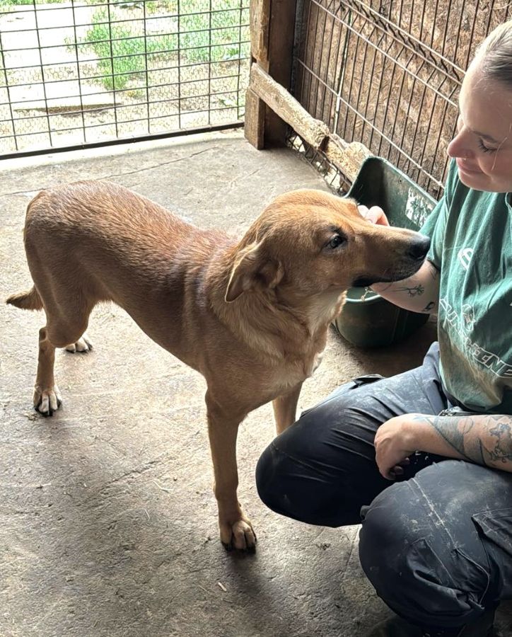 Diese ganz sanfte Hündin hat direkt unser Herz erobert, als wir den kleinen dunklen Kennel betreten haben. Nicht nur wegen ihrer rührenden Geschichte, sondern auch wegen ihrem ruhigen und tollen Wesen. Sie ist eher zurückhaltend und wartet geduldig bis sie an der Reihe ist. Sie drängt sich nicht in den Vordergrund und freut sich über jede Aufmerksamkeit, die sie bekommt. Sie lässt sich sehr gerne streicheln und suchte aktiv den Kontakt zu uns.