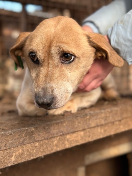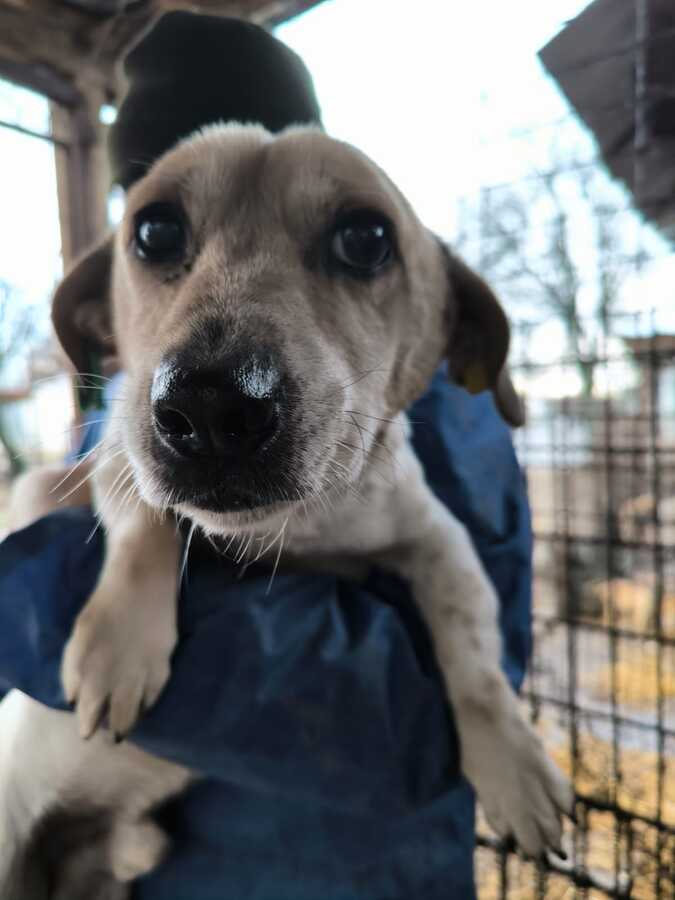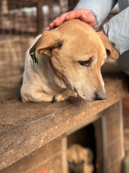 Hänsel ist fix & fertig. Für ihn ist das Shelter eine Qual. Da er sehr klein ist, ist er bei den Welpen untergebracht. Das macht er toll, aber seine Lösung ist, sich in der Hütte einzuigeln und zu hoffen, dass das Leben hier vorbei geht.