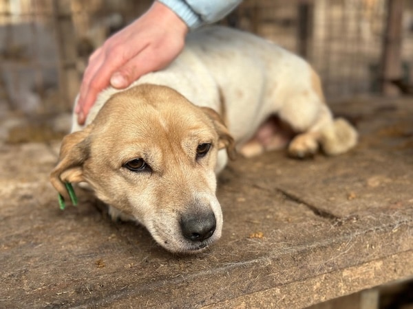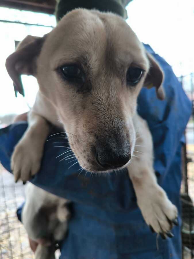 Wir konnten ihn prima aus der Hütte raus heben. Er lässt alles mit sich machen. Da aktuell keine Lebensfreude ihn ihm steckt, konnte er es auch nicht genießen. Wer schenkt diesem kleinen Kerl seine Lebensfreude zurück? Wäre es nicht wunderschön diesen kleinen Mann eines Tages über Wiesen freudig hüpfen zu sehen?