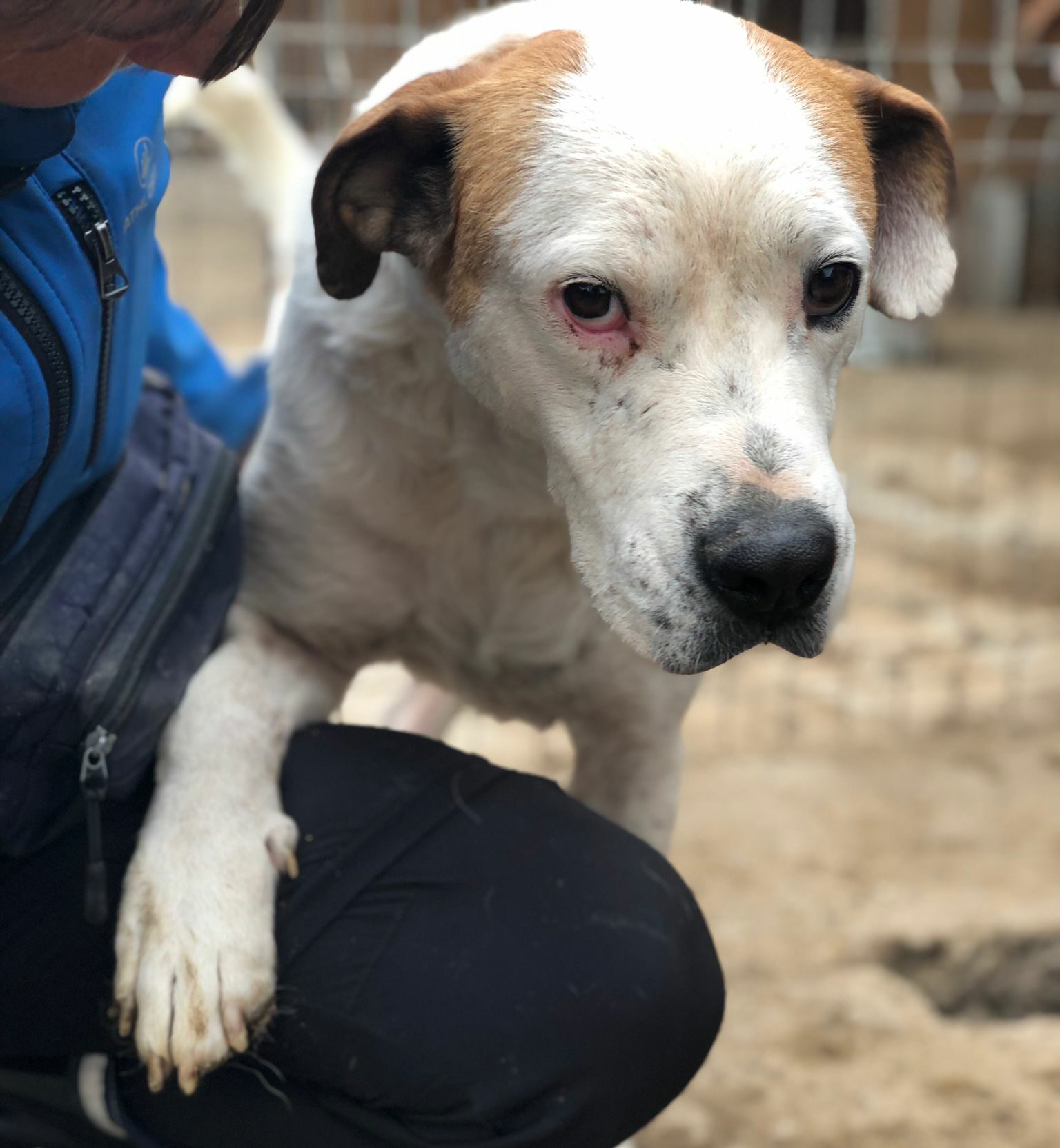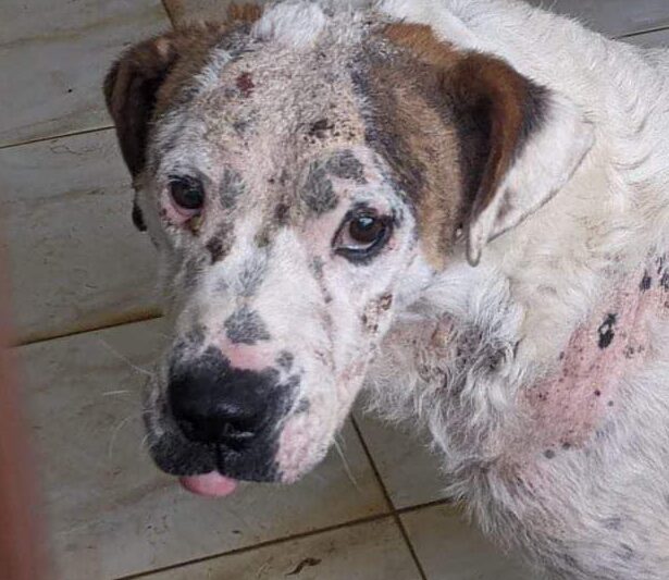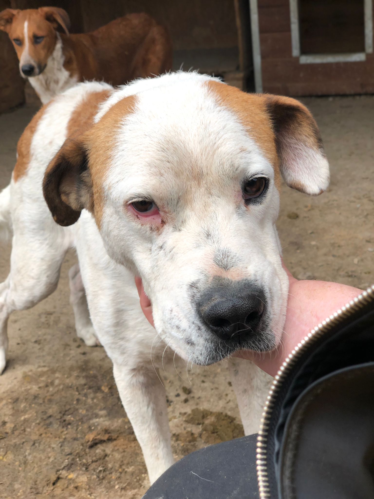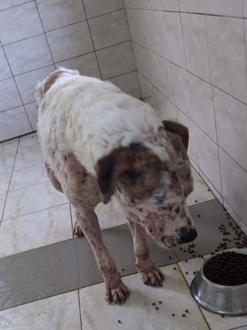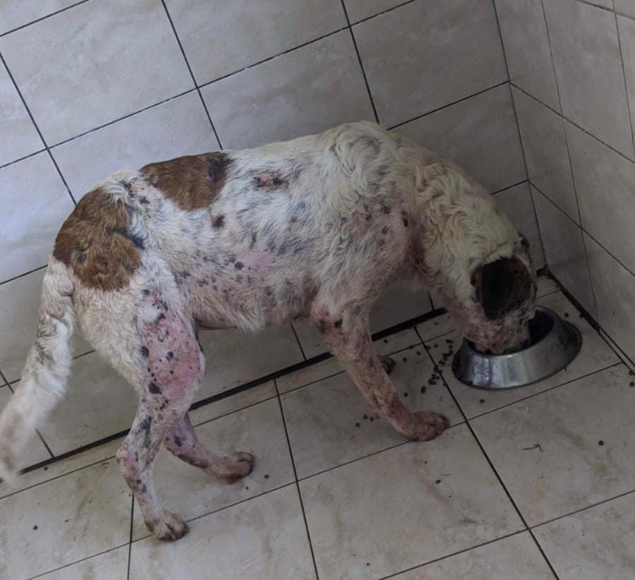 HALEV ist gut anfassbar, hat eher ein ruhiges Temperament und ist verträglich mit anderen Hunden. Seine Haut war nässend, unfassbar schlimmer Juckreiz plagte ihn. Er ist ausreisefähig ab Mitte Juni 2021, wenn die schlimmsten Wunden abgeklungen sind.