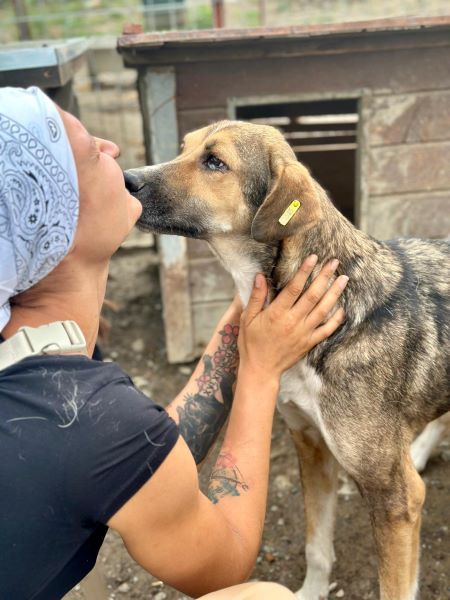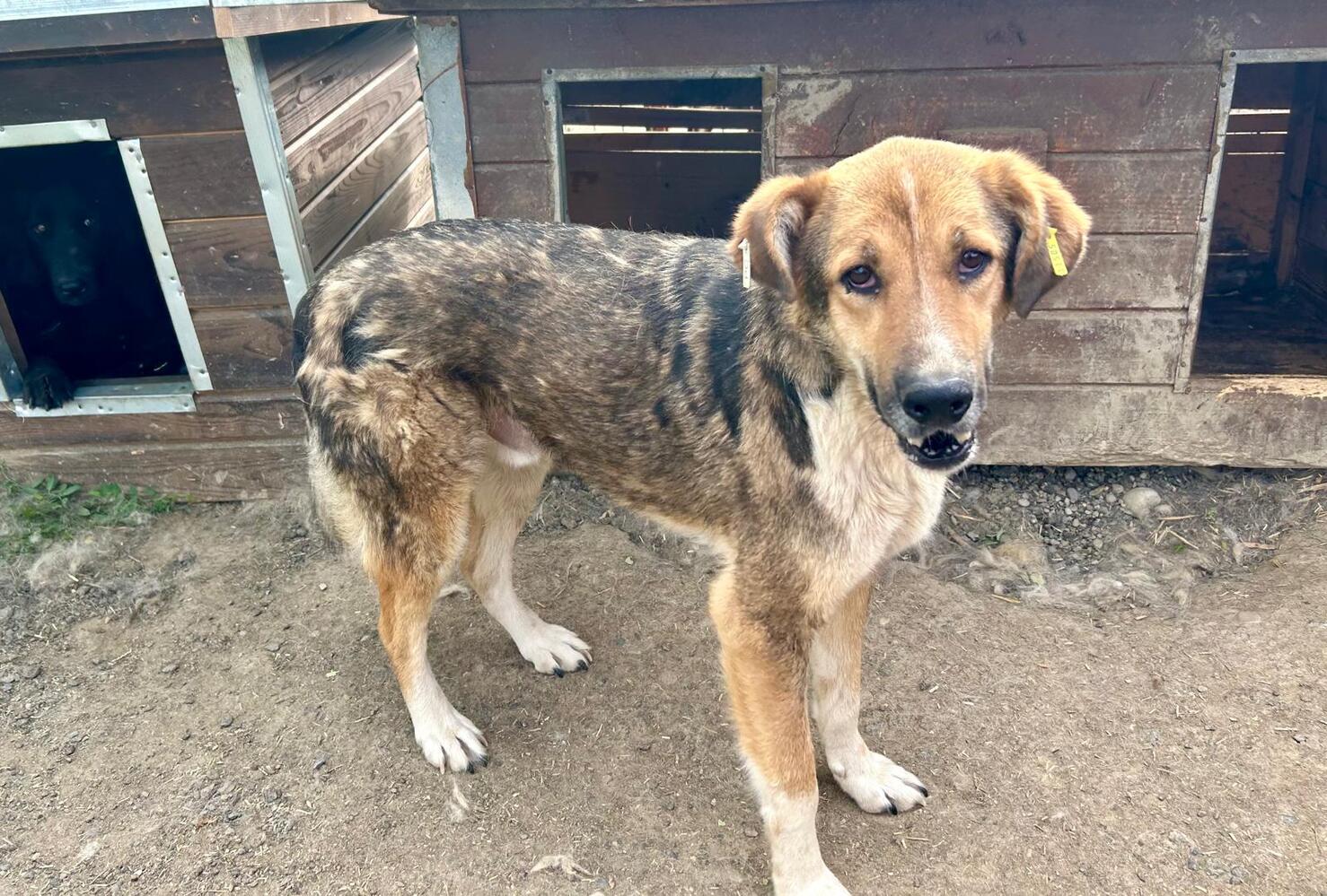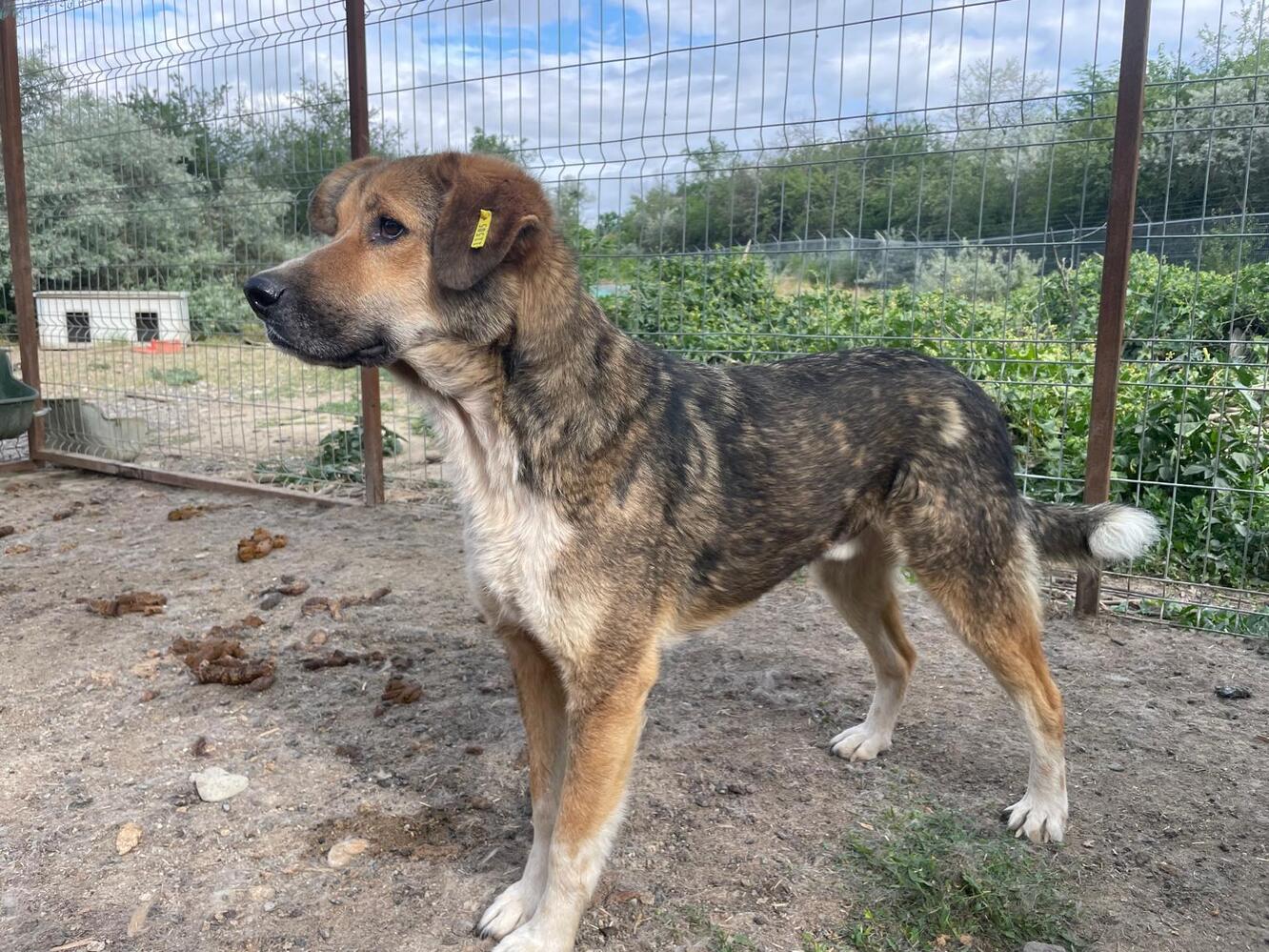 HAMILTON – Was für ein großartiger Rüde! Anfangs nahm er noch etwas zögerlich Leckerli aus der Hand und man konnte ihn dann dabei vorsichtig an der Schnauze berühren. Als wir ihn im Kennel etwas bedrängten, um zu testen, ob er sich anfassen lässt, taute HAMILTON plötzlich auf. Streicheln war gar kein Problem – wir konnten ihn überall anfassen, und die Leckerli holte er sich selbständig ab.