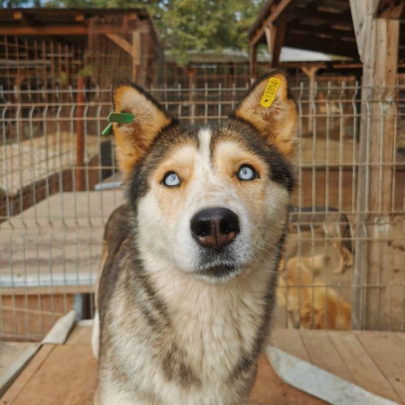 Die hübsche Husky-Mix – Hündin HANNA war bei unserem Besuch noch recht neu in Bucov und wurde ein paar Tage zuvor frisch kastriert in diesen Außenkennel gesetzt. Sie hielt sich zunächst in der Hütte auf, als wir den Kennel betraten, die Neugier war aber sofort da und die mitgebrachten Leckerchen hat sie gerne genommen. Sie ließ sich gut streicheln und zeigte sich durchgehend freundlich uns und den Rüden in ihrem Kennel gegenüber. Wir konnten dort nur Rüden identifizieren, die HANNA teilweise auch noch besteigen wollten. Auch hier blieb sie ruhig und souverän, so wie sie sich auch uns gegenüber zeigte.
