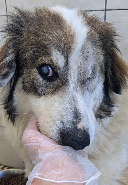 HANNE kam mit einem extrem vergrößerten Auge ins Shelter, welches in einer OP entfernt werden musste. Wir wissen ihre Vorgeschichte nicht, doch nun kann sie endlich schmerzfrei leben.