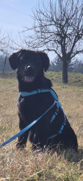 Hannes hat glänzendes schwarzes Fell und ist eine wunderschöne Erscheinung. Sein Charakter? Wir vermuten einen Retriever-Mischling, so zeigt er sich liebevoll, sanftmütig. Man muss ihn einfach mögen.