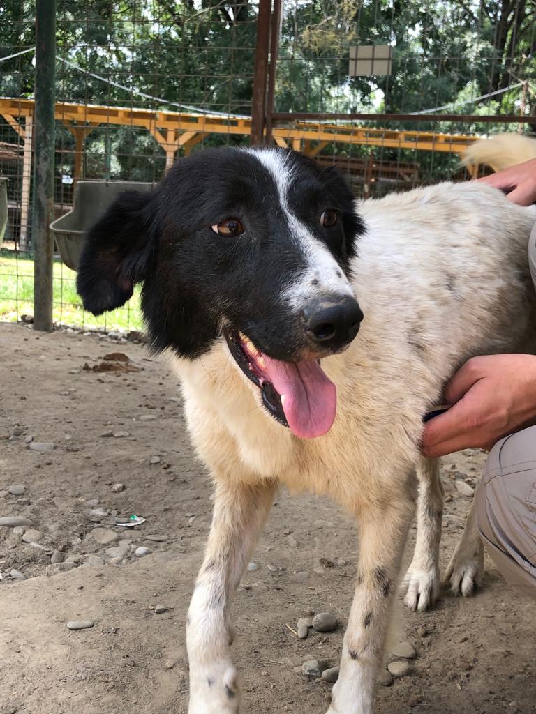 Sie ist verträglich mit anderen Hunden und lebt aktuell frei im Gelände.