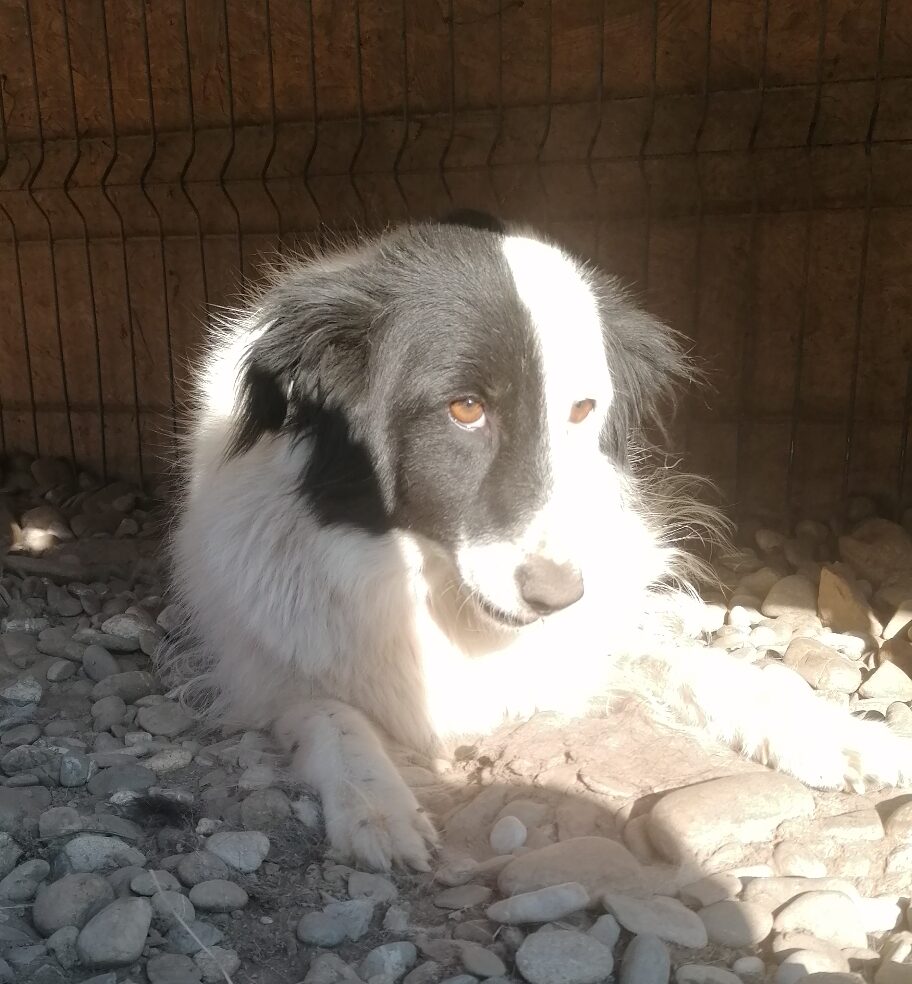 HARLEKIN war sehr neugierig und immer in der Nähe. In diesem Kennel hatten wir etwas mehr Zeit und man merkte, wie HARLEKIN zusehends auftaute. Nach kurzer Auftauphase war ein Sitzen und nachher sogar das Liegen in unserer Nähe kein Problem mehr. Leckerlies wurden problemlos aus der Hand genommen, anfassen war ganz vorsichtig möglich. Wir denken, in einem Zuhause wird HARLEKIN sicher zügig auftauen.