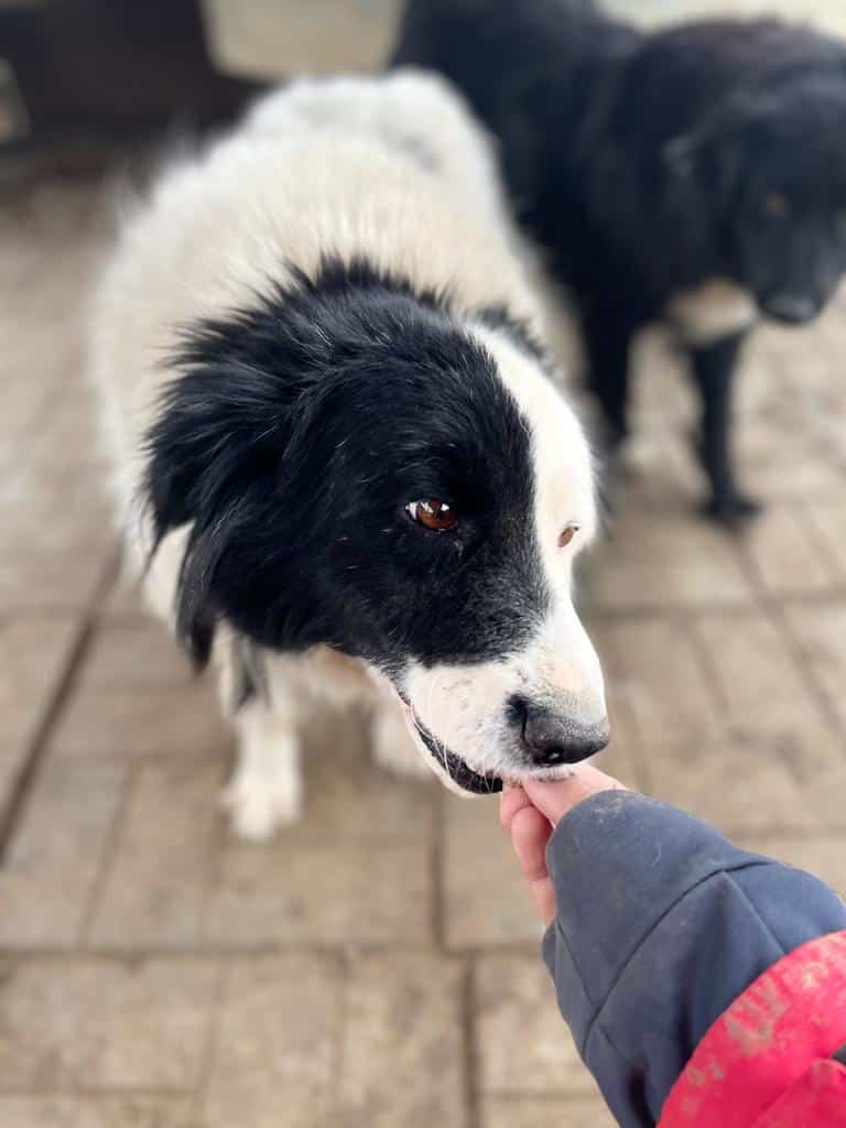 HARLEKIN hat sich sehr positiv entwickelt in den letzten Monaten seit unserem Besuch und kam direkt vor, als wir in den Kennel sind. Leckerlie aus der Hand nehmen stellte kein Problem dar.