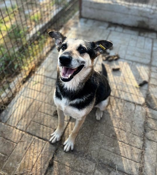Bei jedem Besuch im Shelter steht HARPER am Kennelgitter und schaut in die Freiheit. Er ist weiterhin interessiert an uns und unseren Leckerlis. Man kann ihn vorsichtig an der Schnauze anfassen, er hat keine Angst vor Menschen, kennt aber vermutlich keine Streicheleinheiten.
