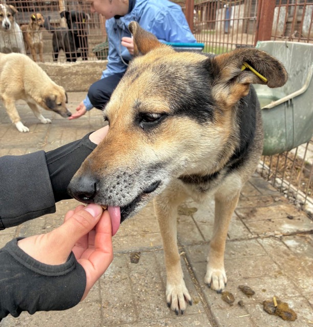 HARPER ist ein weiterhin freundlicher und neugieriger Rüde, der es toll fand, dass wir da waren. Er nimmt begeistert Futter aus der Hand und ist vorsichtig an der Schnauze anfassbar.