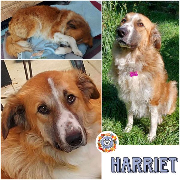 Harriet ist liebevoll und menschenfreundlich. Sie mag Männer, Frauen, Kinder. Gemeinsame Spaziergänge sind ihre große Freude. Sie kann problemlos einige Zeit allein bleiben. Im Haus zeigt sie eine natürliche Wachsamkeit, ist jedoch nicht verkläfft. Ungewohnte Dinge meldet sie mit ihrer tiefen, schönen Stimme, beruhigt sich jedoch sofort wieder und ist allen Besuchern gegenüber freundlich. Mit dem vorhandenen großen und kleinen Hund versteht sie sich sehr gut. Bei fremden Hunden ist sie erst mal vorsichtig und geht ihnen nach Möglichkeit aus dem Weg. Sie geht gut an der Leine und reagiert überhaupt sehr aufmerksam und sensibel auf jede Ansprache.