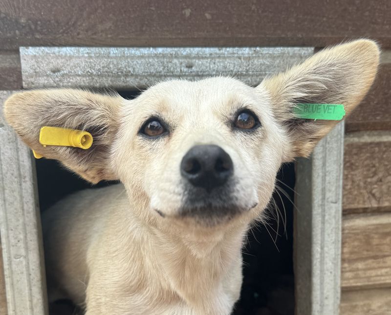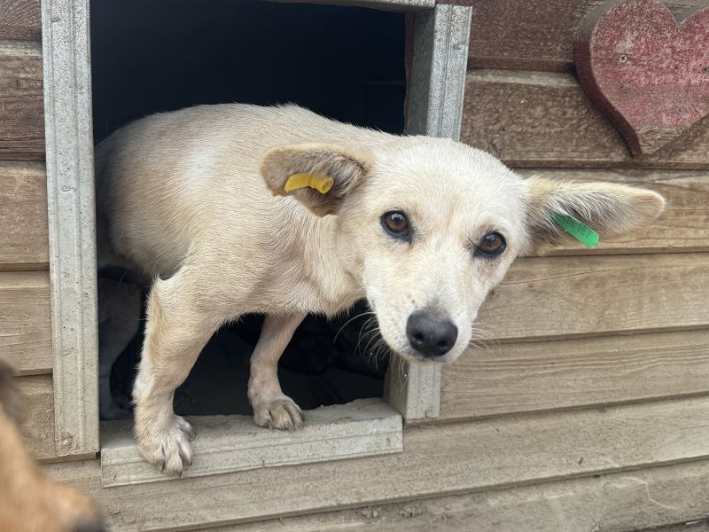 HEDY ist eine 31cm kleine, weiße Hündin mit supersüßen Fledermausöhrchen, die sie immer mal wieder neugierig aufstellt. Als wir sie im Oktober’24 in ihrem Zwinger sahen, war sie gerade erst vor wenigen Tagen kastriert worden und die gesamte Gruppe im Zwinger wurde neu zusammengestellt. So viel HEDY uns erst auf als sie ihre Öhrchen aus einer der Hundehütten steckte, denn wir hatten Leckerchen dabei und das machte sie doch neugierig. Sie kam sehr liebevoll zu uns und den anderen Hunden und wartete geduldig ab, ob sie auch ein Leckerchen ergattern kann. Natürlich bekam die süße Maus einige Leckerchen von uns und währenddessen ließ sie sich auch gerne ausgiebig kraulen. Dabei legte sie sich auf den Rücken und war für diesen einen Moment wieder richtig glücklich. Nachdem wir uns dann mit weiteren Hunden beschäftigten und sie eine Weile gewartet hatte, drehte sie sich um und hüpfte mit ihren kurzen Beinchen wieder in die Hütte und legte sich schlafen. Die nächsten Tage gingen wir immer wieder in ihren Zwinger und sie wusste sofort wer wir sind und kam immer sofort auf uns zu mit einem Lächeln im Gesicht. Wir sind uns ganz sicher: Wer HEDY ein Zuhause gibt bekommt eine traumhaft süße, liebe und dankbare kleine Maus.