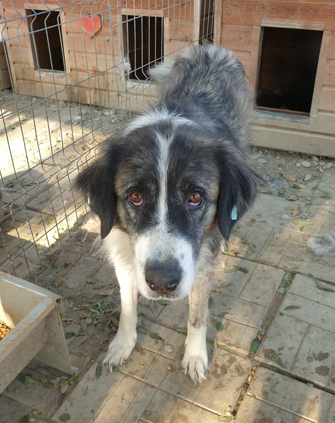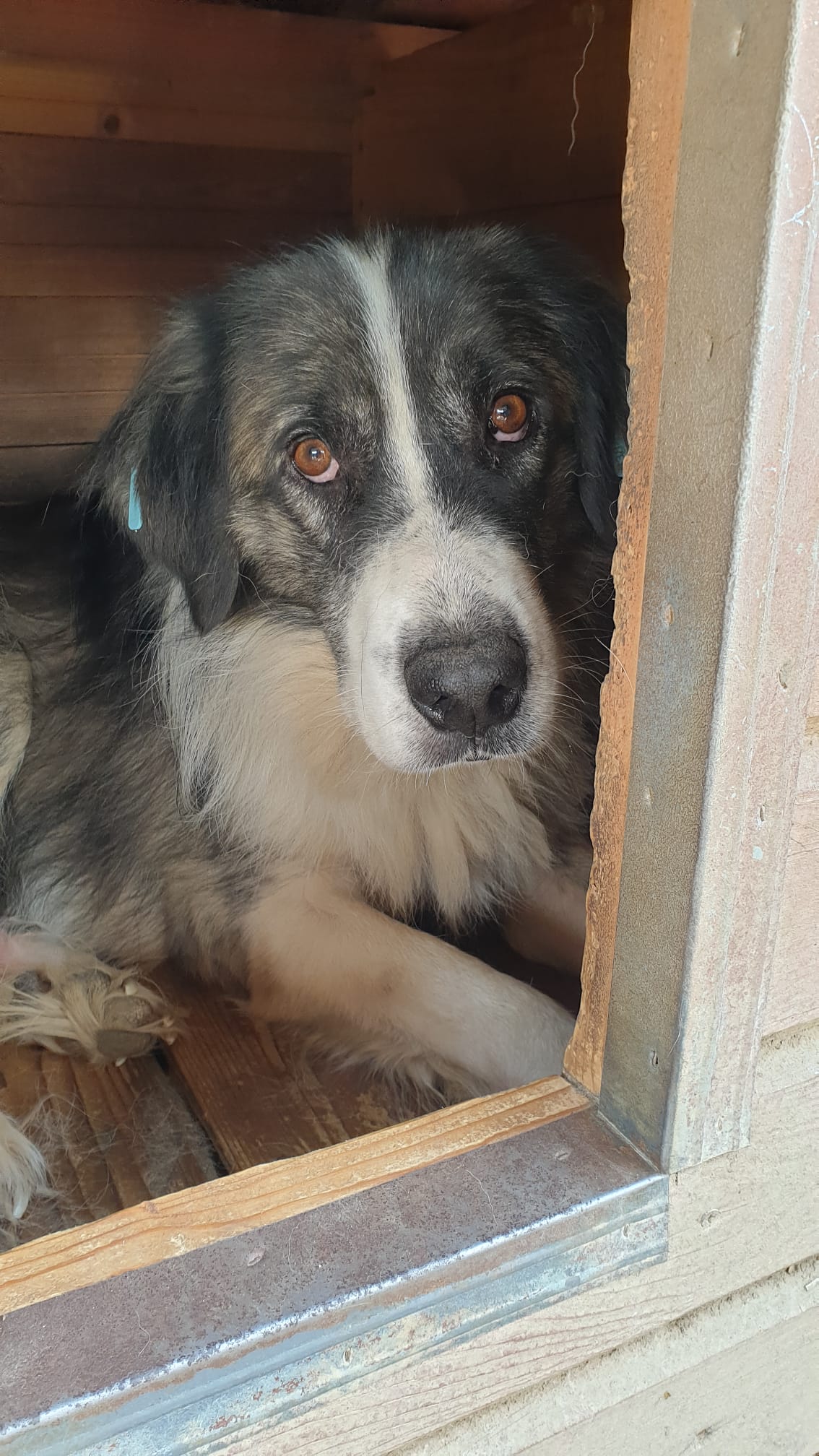 Wir haben HEINO schon im Sommer 2021 in Bucov gesehen, da saß er aber nur in der Hütte, vielleicht war es ihm zu warm, um aufzustehen. Tatsachlich lebt er also schon einige Monate länger in Bucov. Als wir dieses Mal im November 2021 bei ihm waren, war es anders. HEINO nahm gerne unsere Leckerlis aus der Hand und kam dann auch neugierig aus seiner Hütte. An beiden Hinterbeinen hatte er eingewachsene Wolfskrallen, was ihm natürlich Schmerzen bereitet hat, und er konnte dadurch auch nicht gut laufen. Wir haben sofort der Tierärztin Bescheid gegeben, dass er behandelt werden muss.