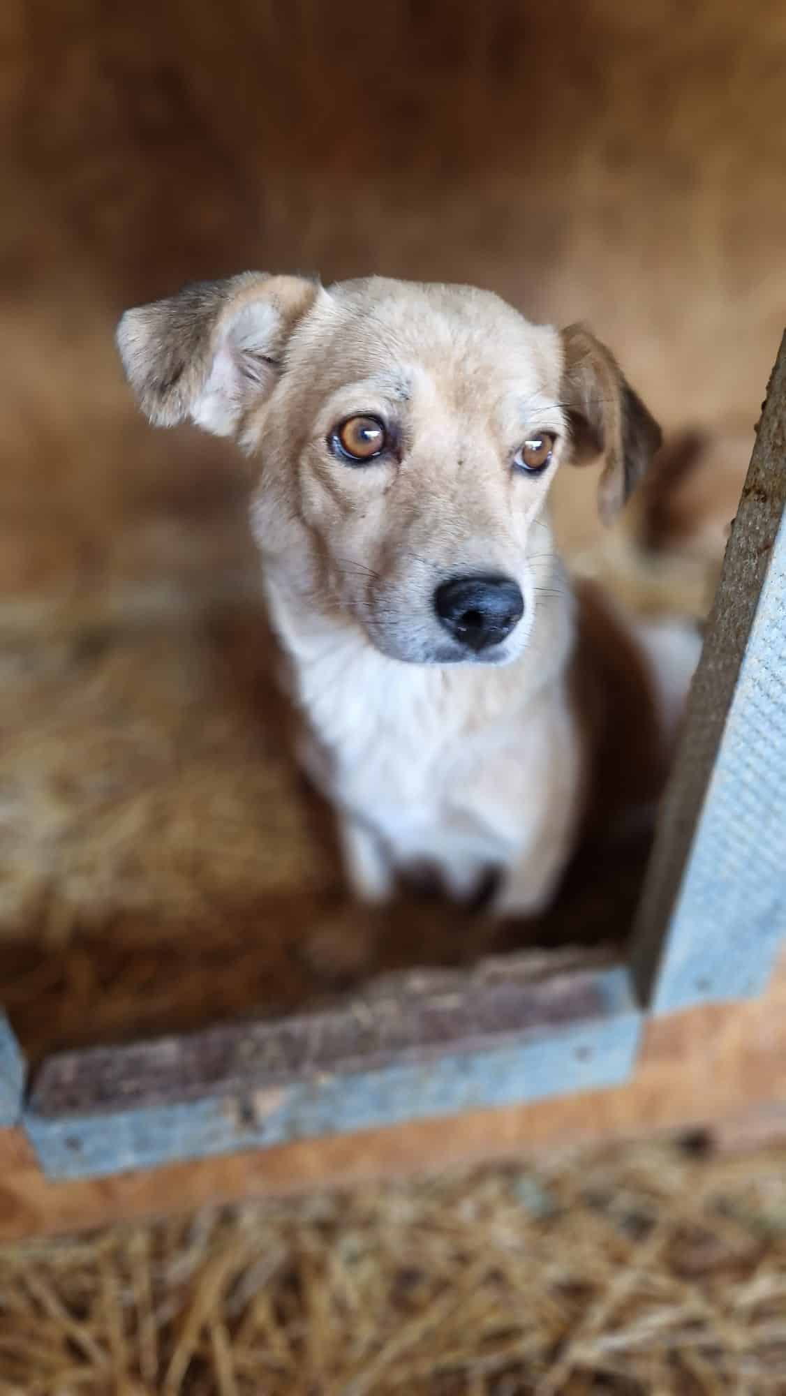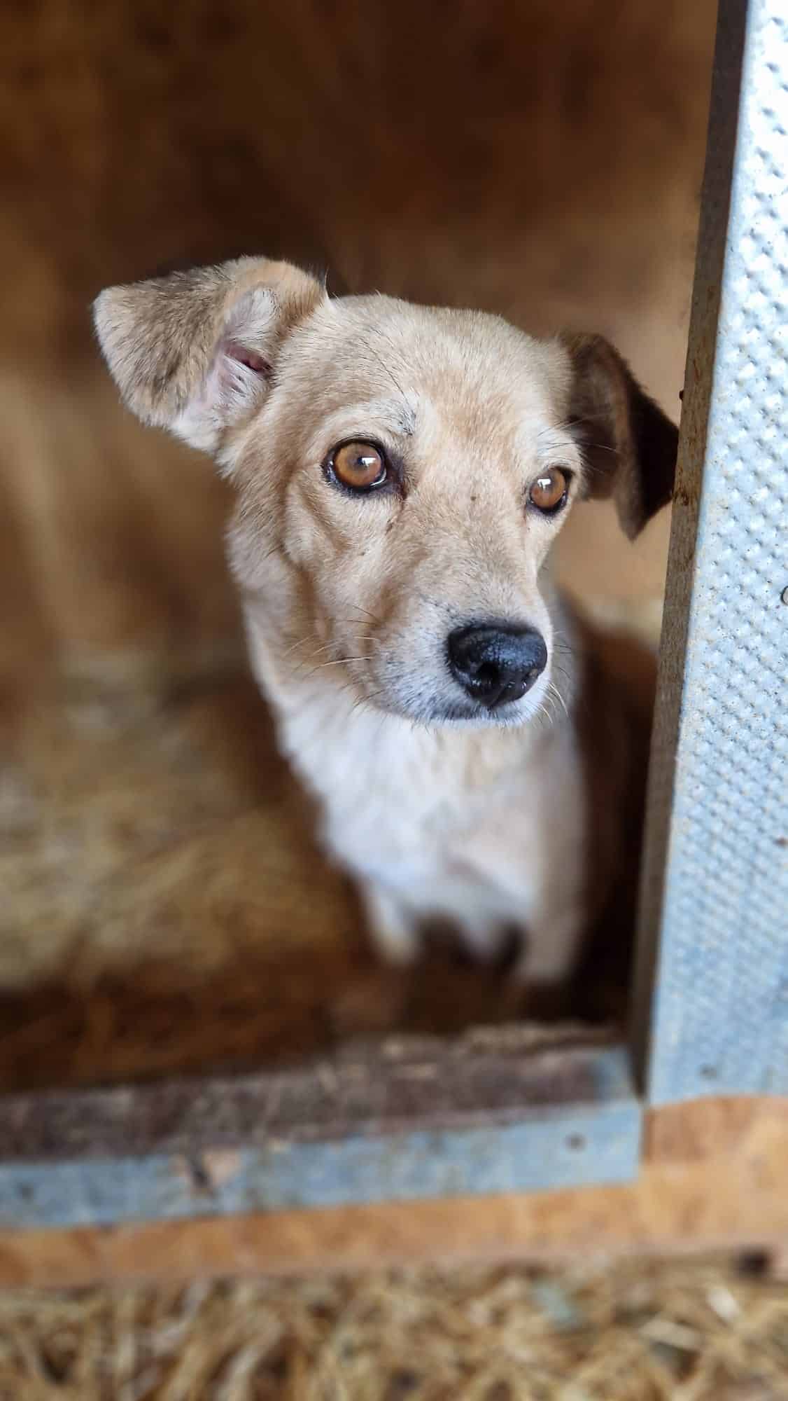 eine liebe kleine Hündin, die sehr traurig über ihr Leben dort ist