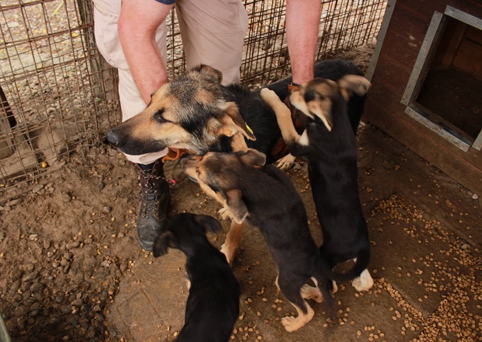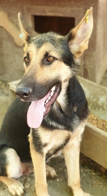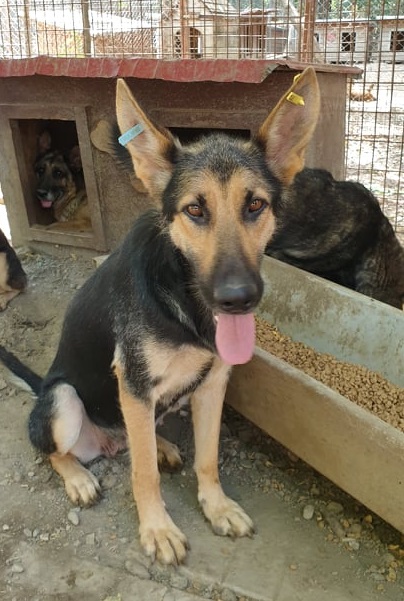 HELLA ist eine sehr freundliche Schäfi-Dame, die rassetypisch sehr menschenbezogen ist. Anfangs war sie sehr aufgeregt, dass endlich einmal jemand in ihren Kennel kam, und hüpfte vor Freude auch an uns hoch. Sie beruhigte sich aber schnell, ließ sich von Anfang an absolut problemlos streicheln und zeigte sich auch ihren Artgenossen gegenüber verträglich.
