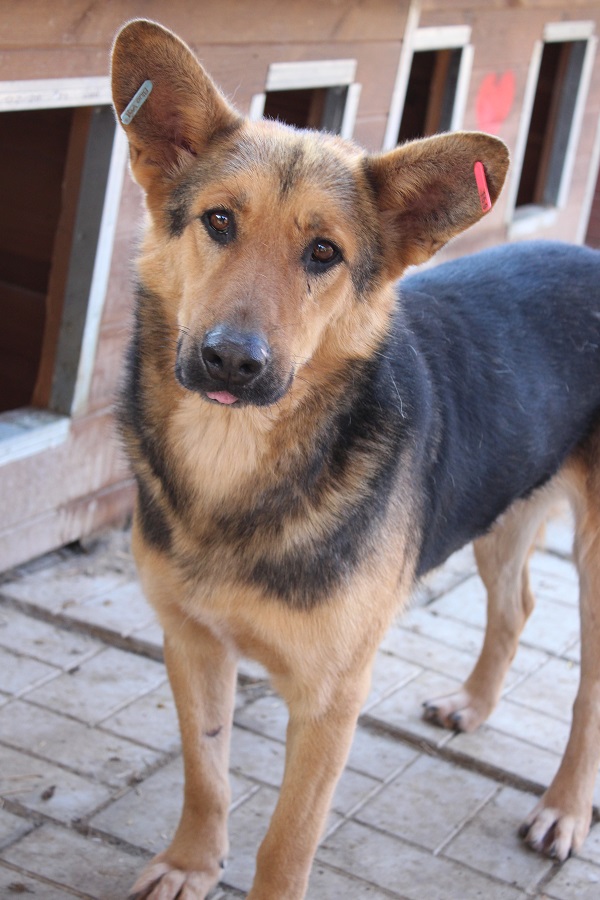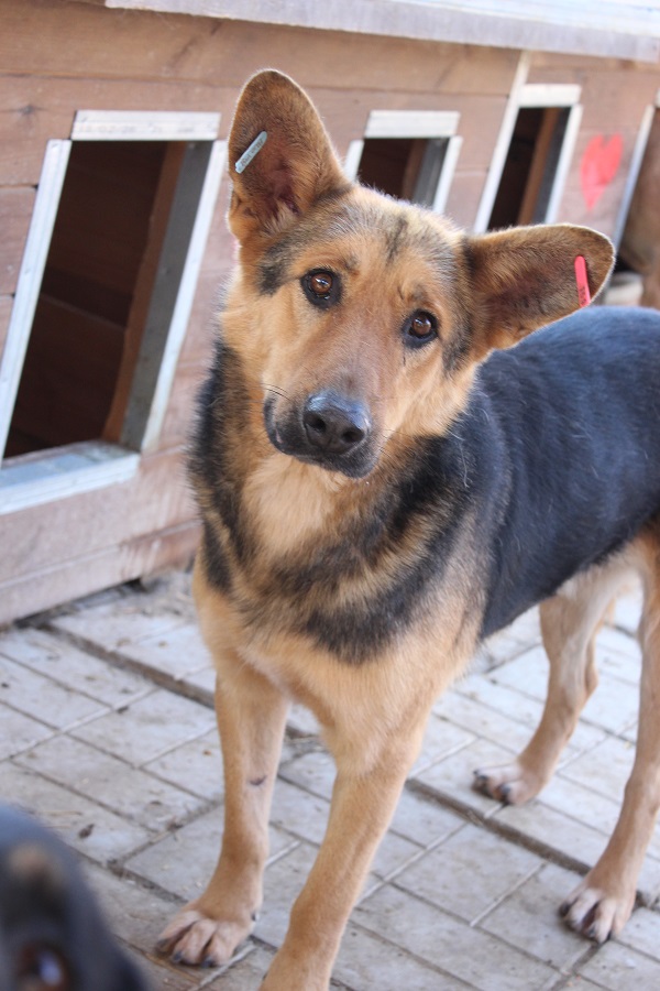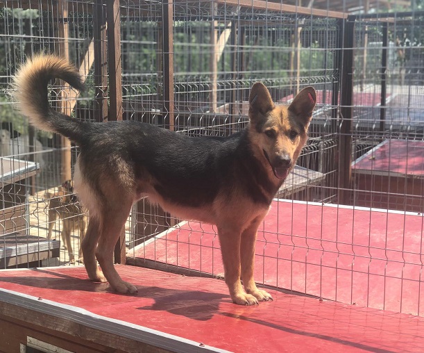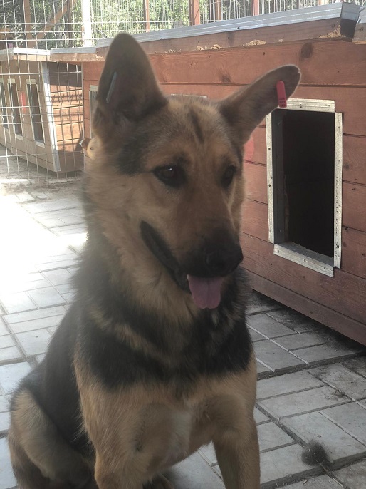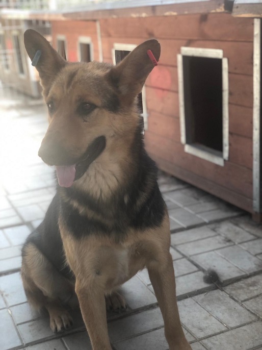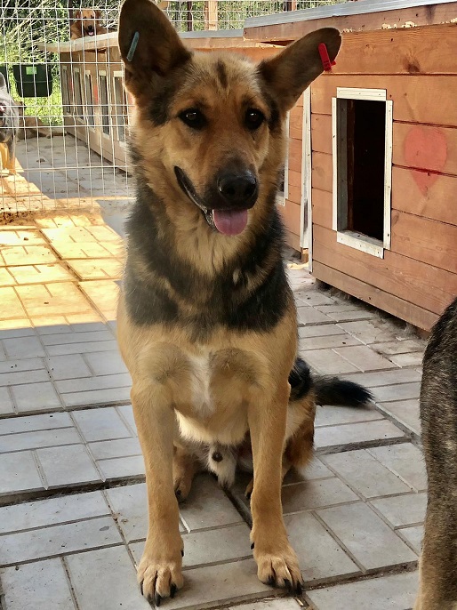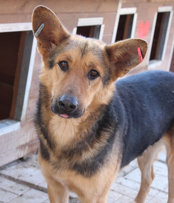 HELMI ist ein wirklich wunderschöner Rüde, der ganz ruhig immer mit ein wenig Abstand zu uns stand. Als wir ihn besuchten, wechselte er gerade über den Zaun zwischen 2 Kennels hin und her. Er war sehr interessiert an uns und traute sich nach einiger Zeit auch, Leckerlies von uns anzunehmen. Der letzte Schritt fehlt ihm aber noch und er lässt sich bisher nicht anfassen.