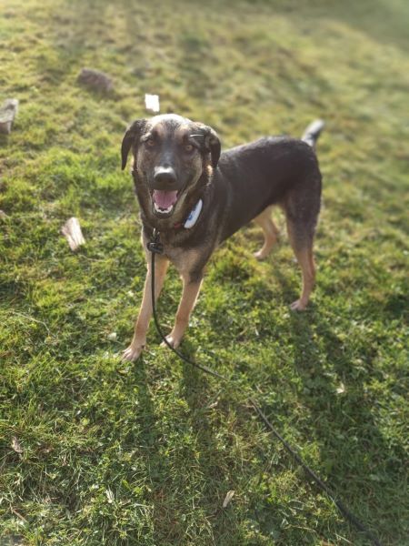 Sie lebt bei uns mit einem Rüden und einer Hündin zusammen, was gut klappt. Sie ist eher dominant und muss bei ,,schwächeren“ Hunden etwas eingebremst werden, wobei sie Korrekturen gut annimt. Sie ist so lebensfroh und es scheint fast so, als müsste sie die ganze angestaute Energie, die sich zwei Jahre im Tierheim angesammelt hat, loswerden.