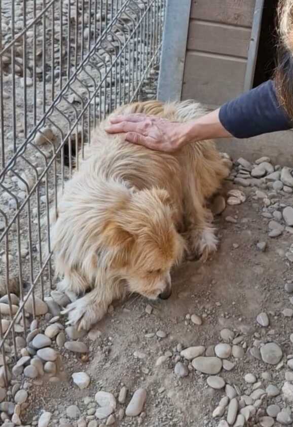 Am ersten Tag im Shelter ging es gleich zum Kennel wo wir Hendrix begegneten. Er bellte uns beim Betreten an und verschwand gleich in der Hütte. Beim anschließendem Bedrängen im Kennel schnappte er mehrmals nach der falschen Hand. Es dauerte eine Weile bis er sich beruhigte und ließ sich zitternd und eingeschüchtert streicheln. Daraufhin nahmen wir uns vor, diesen Vorgang täglich zu wiederholen, da er als Langzeitinsasse mit mehr als 7 Jahren Shelter als nicht anfassbar galt. Am Ende der Woche konnten wir ihn ohne großartige Bedrängung anfassen, streicheln und er frass Leckerchen, wenn auch etwas zögerlich, aus der Hand.