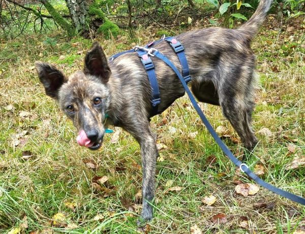 Ausgedehnte Gassigänge genießt er sichtlich und ist dabei sehr an seiner Umgebung interessiert. Er ist recht umweltsicher und nicht schreckhaft. Mit anderen Hunden ist er sehr verträglich, zu Beginn aber oft etwas aufgeregt, da braucht er noch etwas Unterstützung durch seine Bezugsperson.