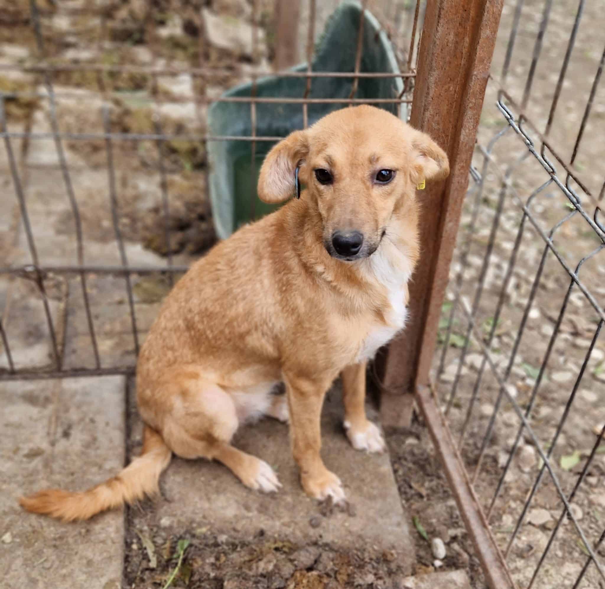saß traurig am Kennelgitter, als wir uns mit anderen Hunden beschäftigten