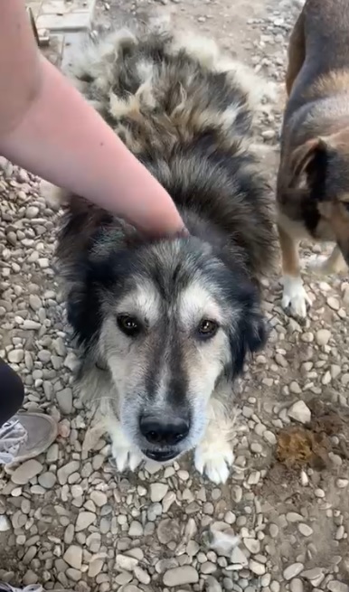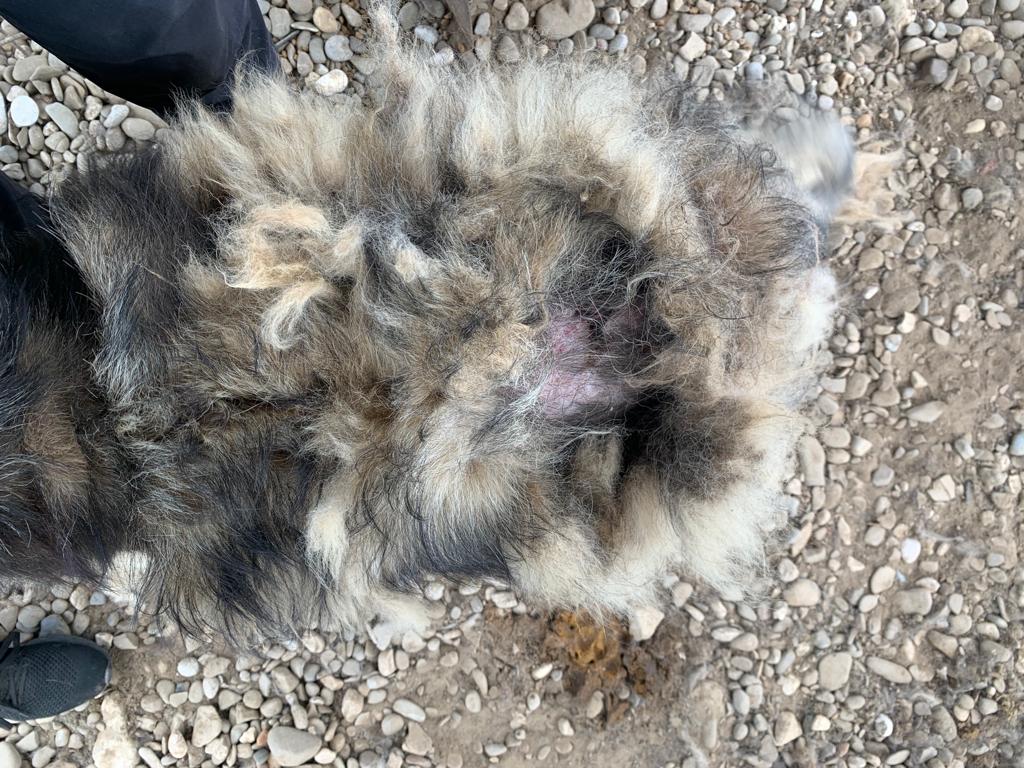 Hündin geb. ca. 2016 Größe: ca. 55cm verfilzt, starke Hautprobleme am hinteren Rücken (07/2022)